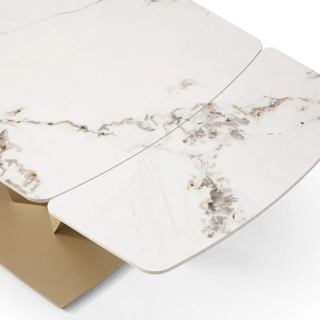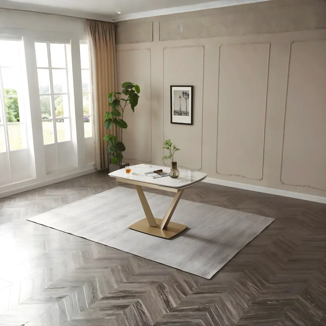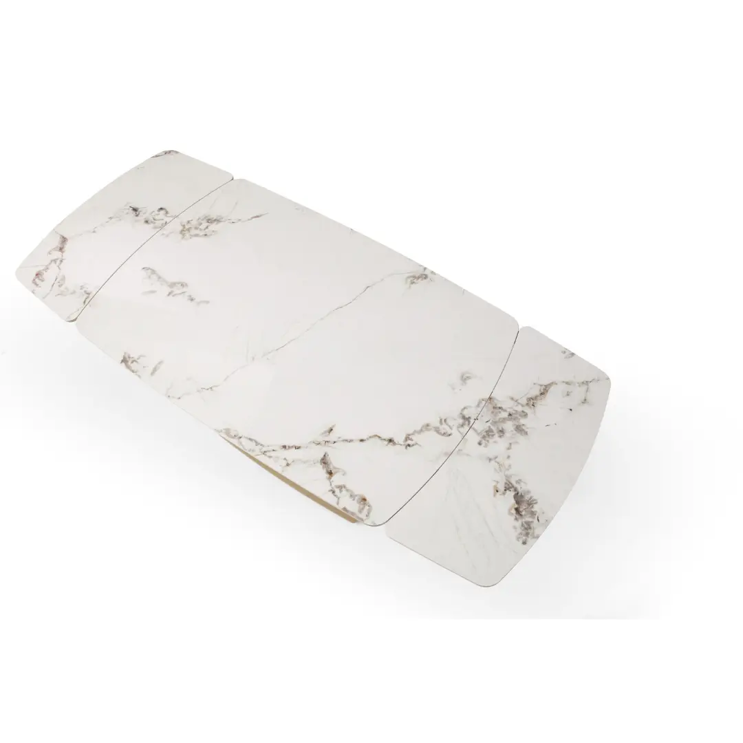 The 109 Extendable Dining Table is a stylish and versatile furniture piece that combines functionality with elegant design. Crafted with precision, this dining table features an extendable mechanism, allowing you to adjust its size to accommodate your dining needs. The white marble design exudes a sense of timeless beauty and elegance, making it a focal point of the room.