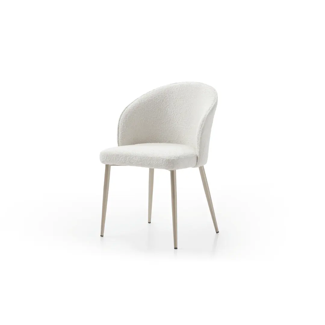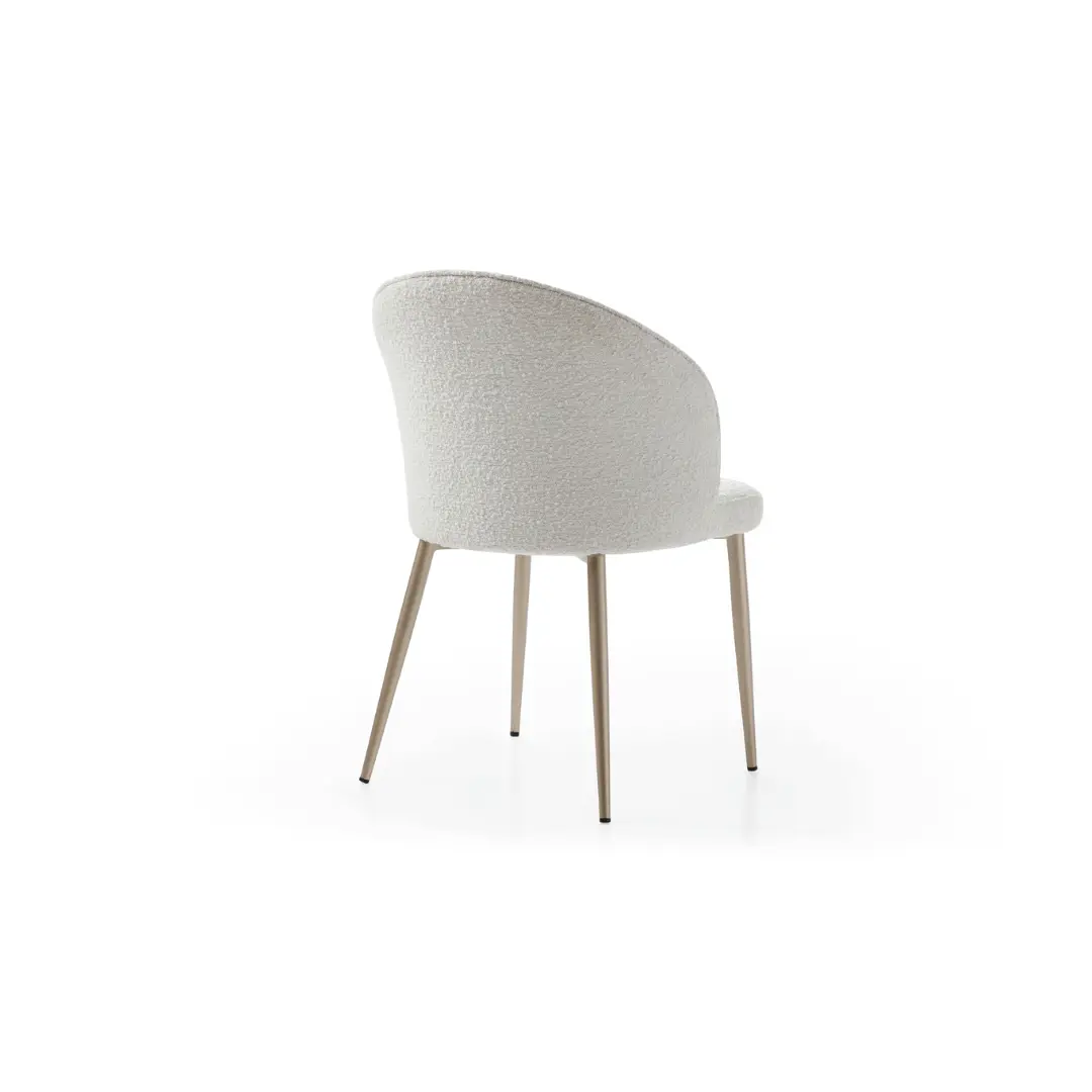 2107 Dining Chair, which features matching golden champagne-painted legs, the overall dining set exudes a cohesive and luxurious look. The combination of the white marble tabletop, golden champagne legs, and comfortable seating of the dining chairs creates a sophisticated and inviting atmosphere for dining and entertaining.