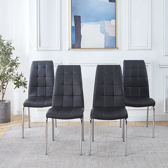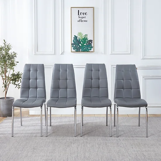 Crafted with a robust stainless steel frame and finished in refined silver chrome, these dining chairs reflect clean lines and minimalist design, making them ideal for upscale residential or hospitality settings. The structure offers more than just looks — it resists corrosion and tarnish, ensuring years of use with minimal upkeep. The luxurious PU leather upholstery, available in timeless black, white, or grey, adds tactile warmth while effortlessly coordinating with a wide range of interior palettes.