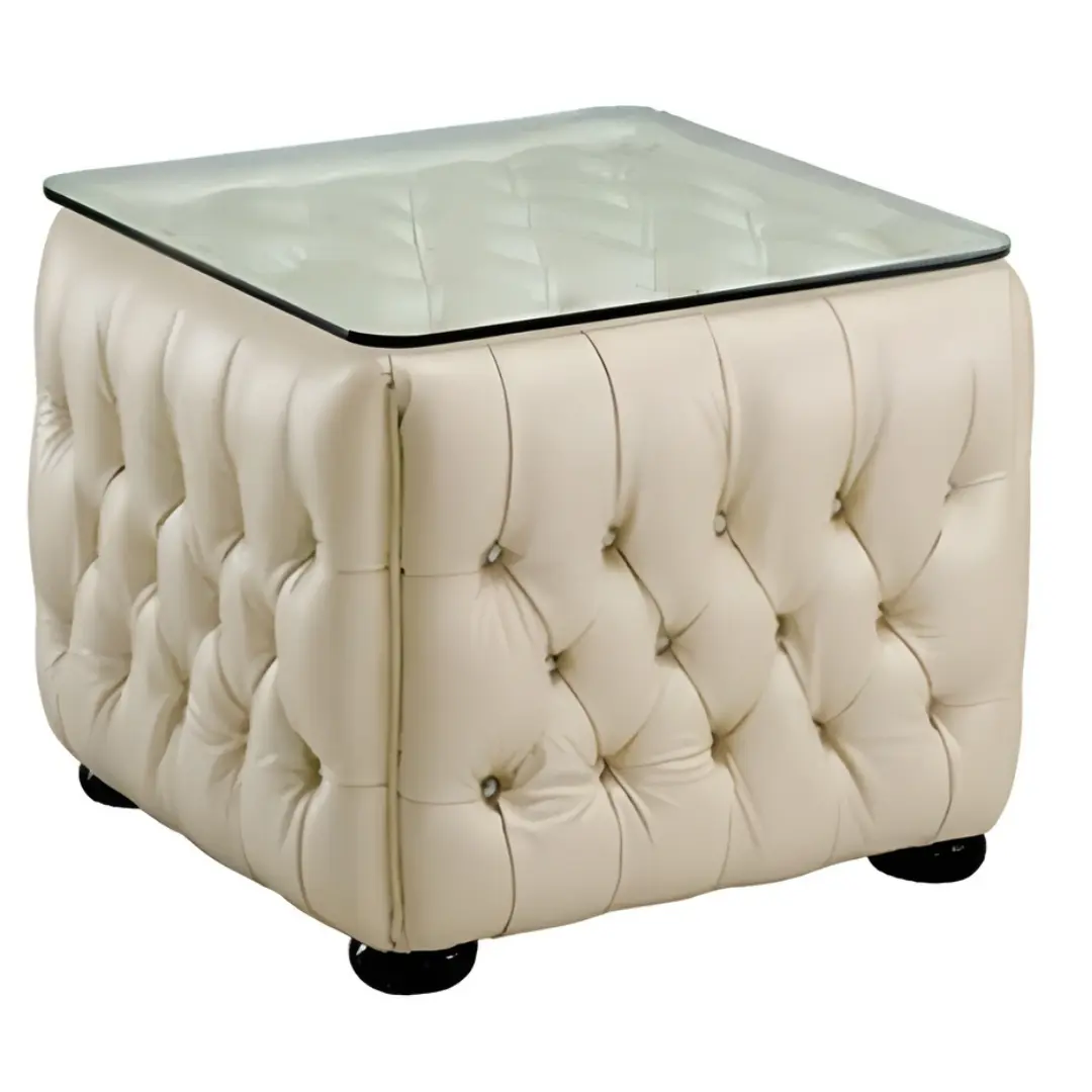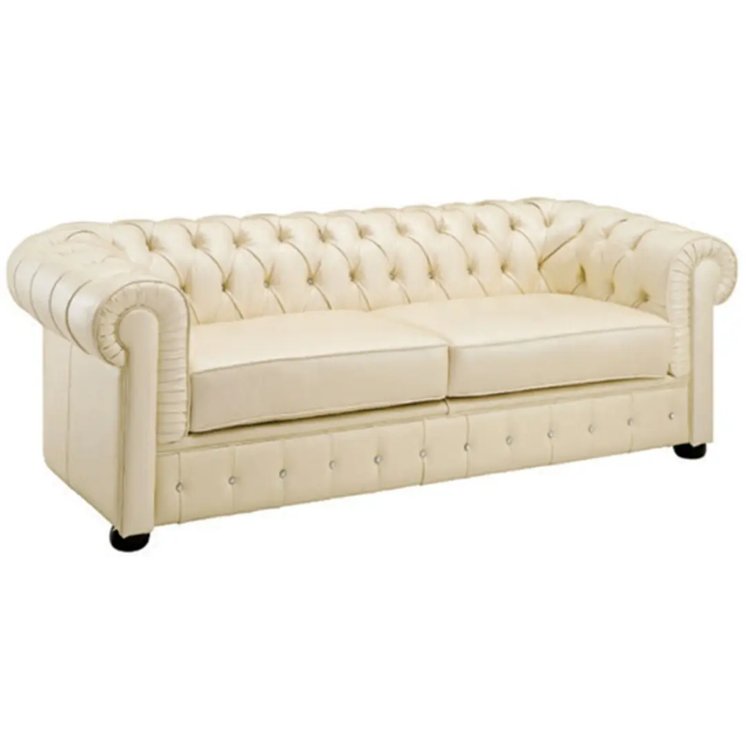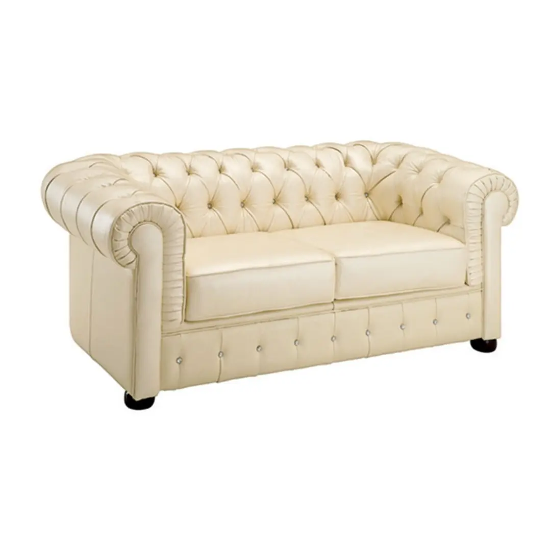 This ivory living room set has an inviting appeal and comfort. The sofa, Loveseat, and Chair are accented with rhinestones and wrapped in the finest genuine Italian leather. Full leather comes standard for this set and you can always special order it in a variety of colors. The cushions are fixed. A Luxury Furniture Set will add a new look to your space.