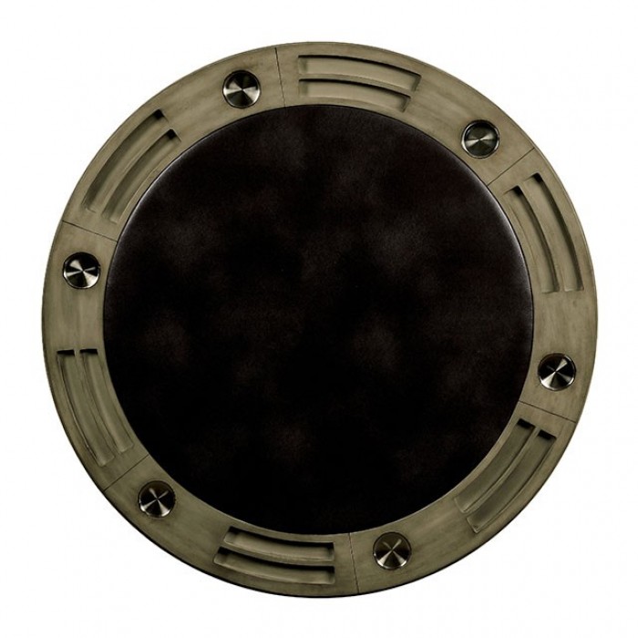 Make every game night and meal more enjoyable with the Yelena 5 Pc Dining Table Set. The reversible tabletop allows you to switch seamlessly between a traditional dining surface and a game-ready table, while the gray finish adds a sleek and modern touch. Stainless steel built-in cup holders provide convenience, making it perfect for friendly gatherings or poker nights.