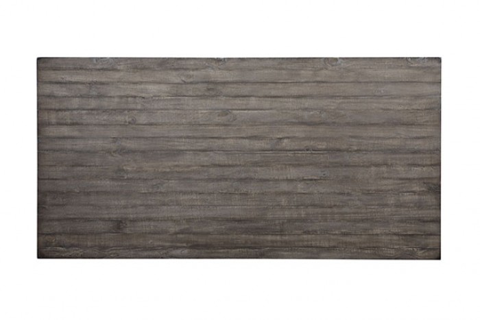 The plank-style tabletop showcases natural texture and character, while the two-tone antique white and gray finish adds visual depth and warmth. Gracefully turned legs introduce traditional elegance, balancing rustic elements with refined craftsmanship.