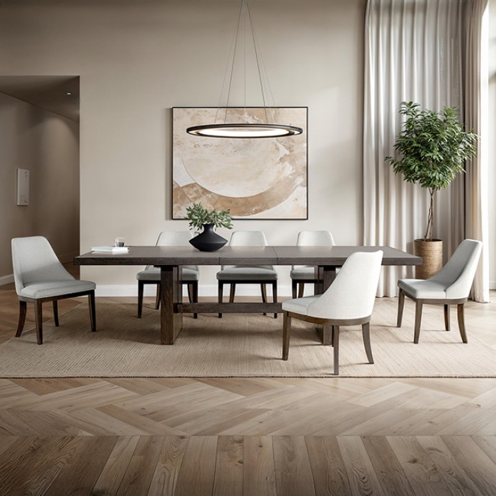 Designed for both intimate meals and special occasions, the Morden 7-Piece Dining Set combines everyday practicality with timeless sophistication. Its extendable table adapts to your needs, while the matching chairs provide comfort and visual harmony — an ideal choice for contemporary homes that value craftsmanship.