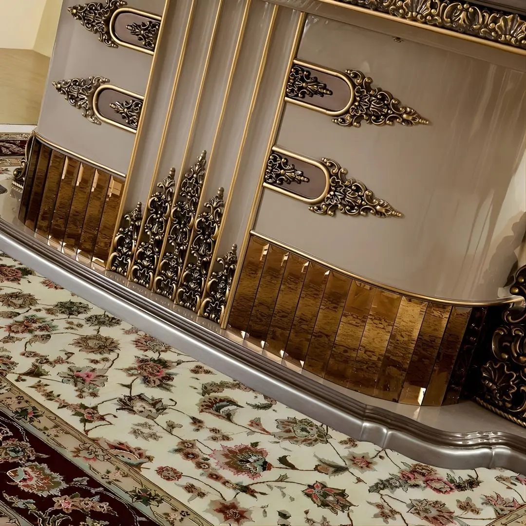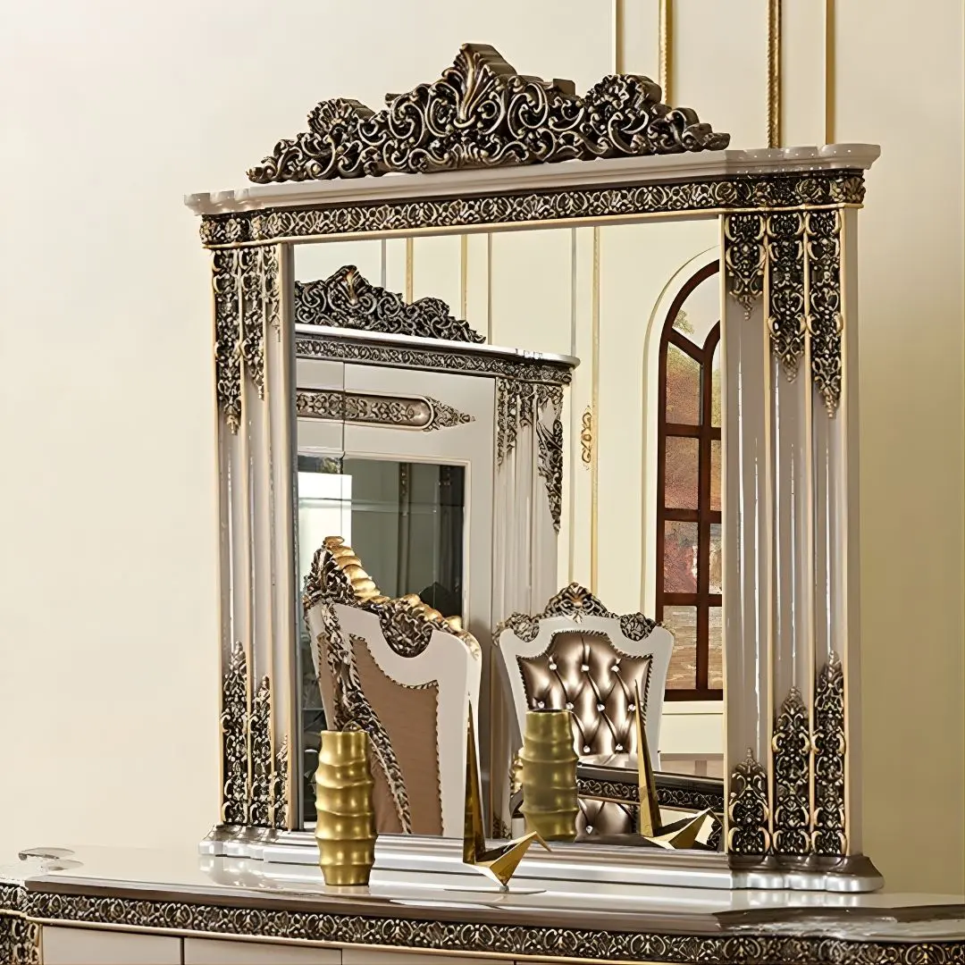 - Sturdy composite frames with intricately carved wood appliqués