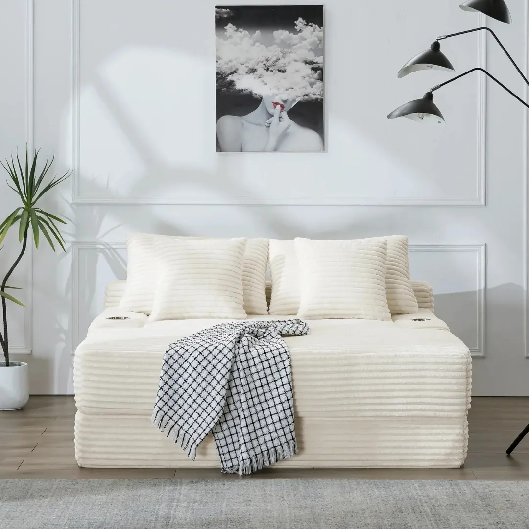 - Choice of Natural Fabrics – Upholstered in breathable, premium textiles with a timeless color palette.