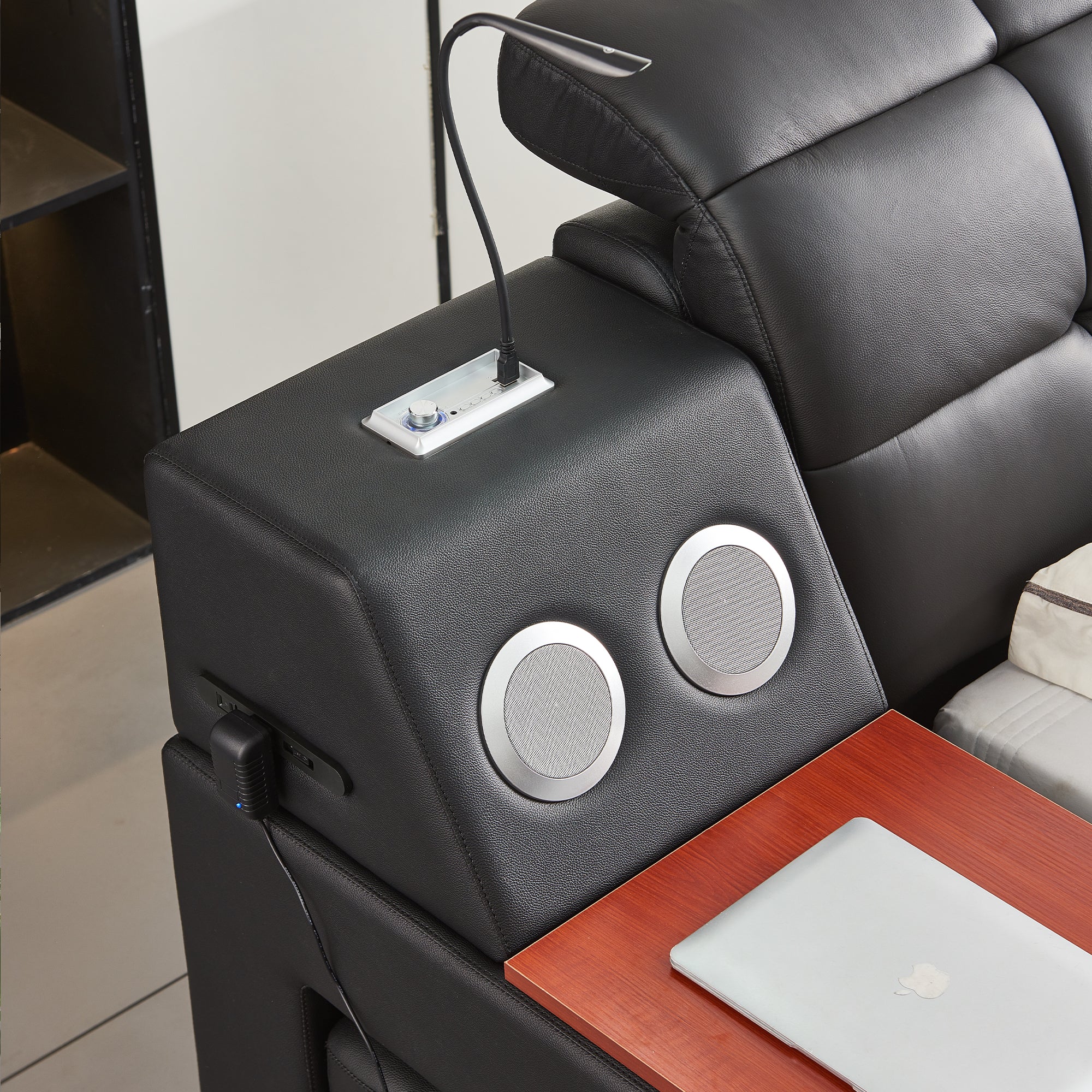 Experience the ultimate fusion of luxury and innovation with this modern smart bed, a cutting-edge design that redefines comfort and convenience. Crafted as a sleek leather bed with storage, it offers more than just a place to rest—it’s a complete relaxation hub. Featuring built-in USB ports, soft ambient USB lighting, and a high-quality Bluetooth speaker system, it creates the perfect environment for entertainment and unwinding. The integrated massage chaise lounge provides ultimate relaxation, while the ottoman set with hidden storage ensures your space stays clutter-free. Designed for modern living, this Eastern King bed is where sophistication meets smart functionality.