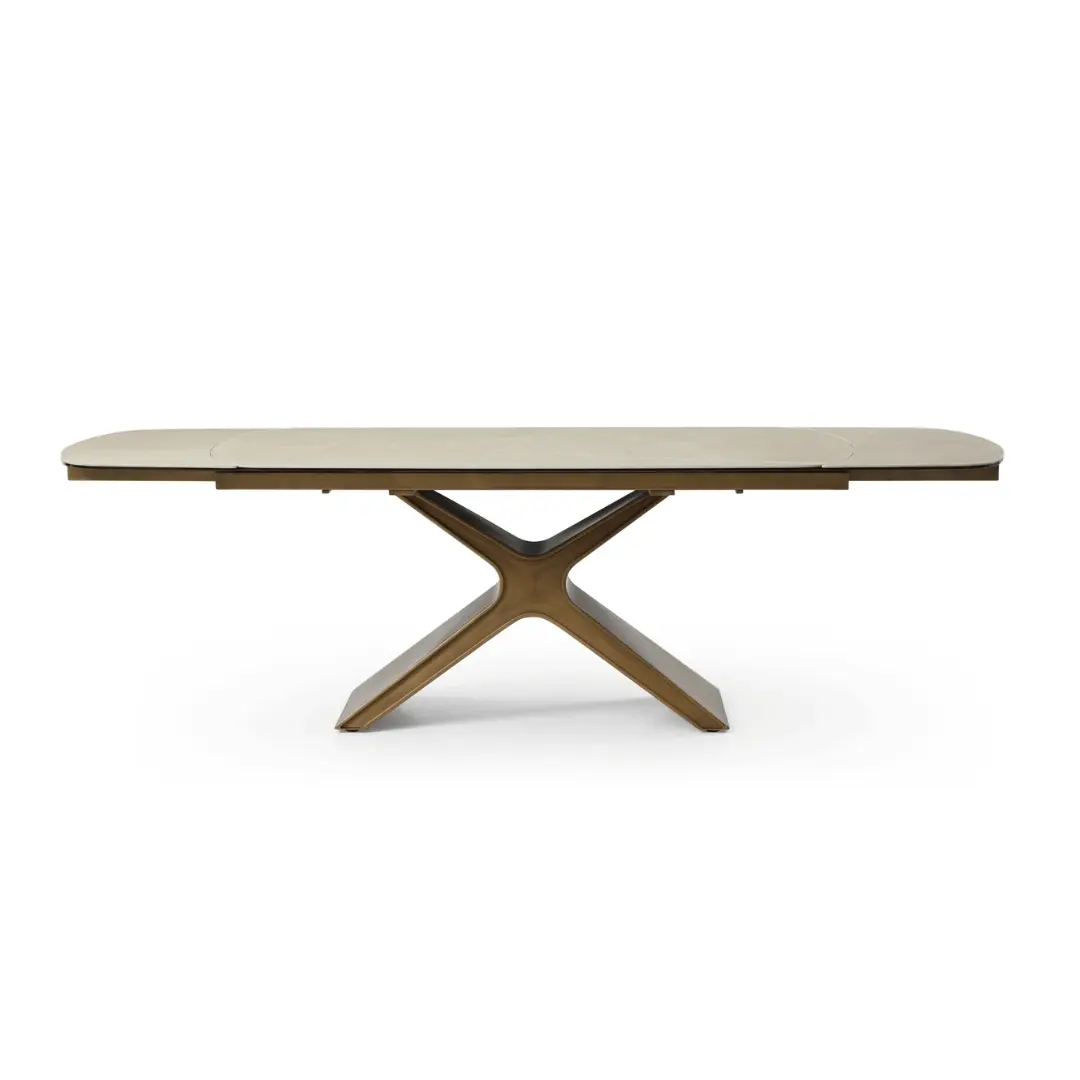 Elegant extended ceramic top dining table.