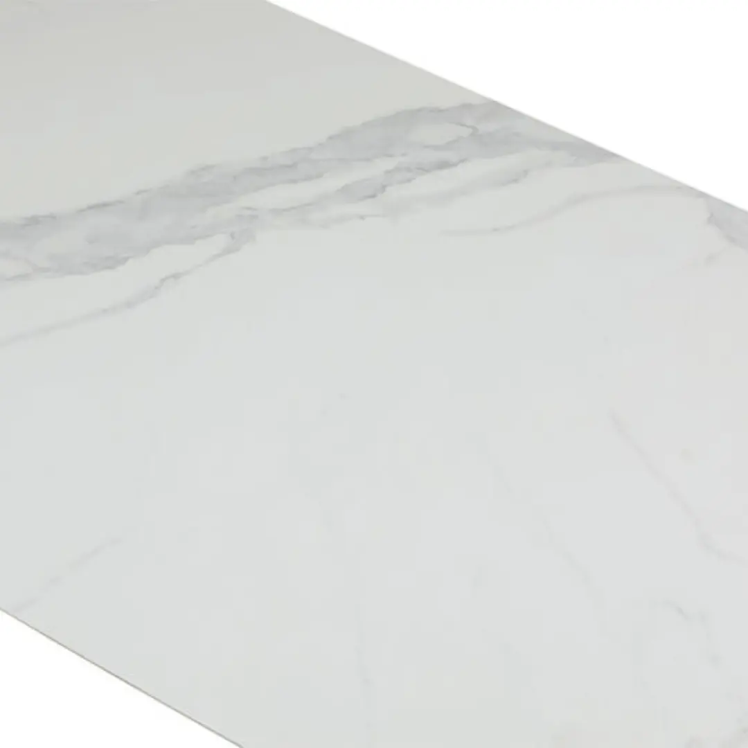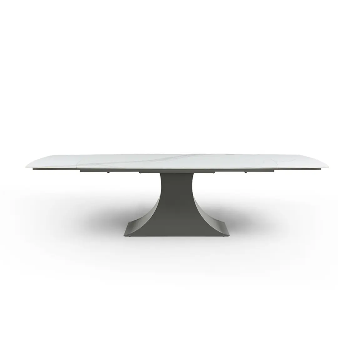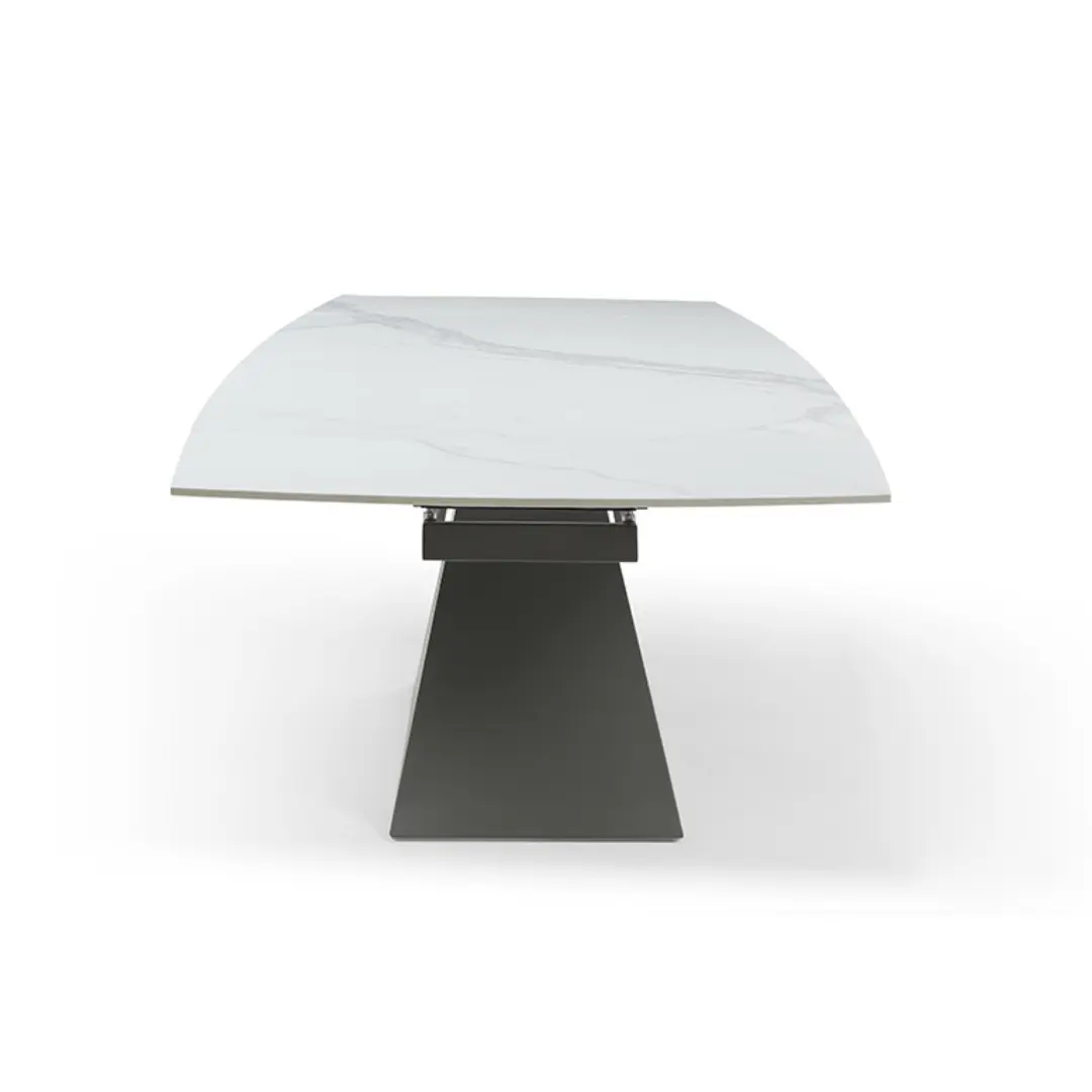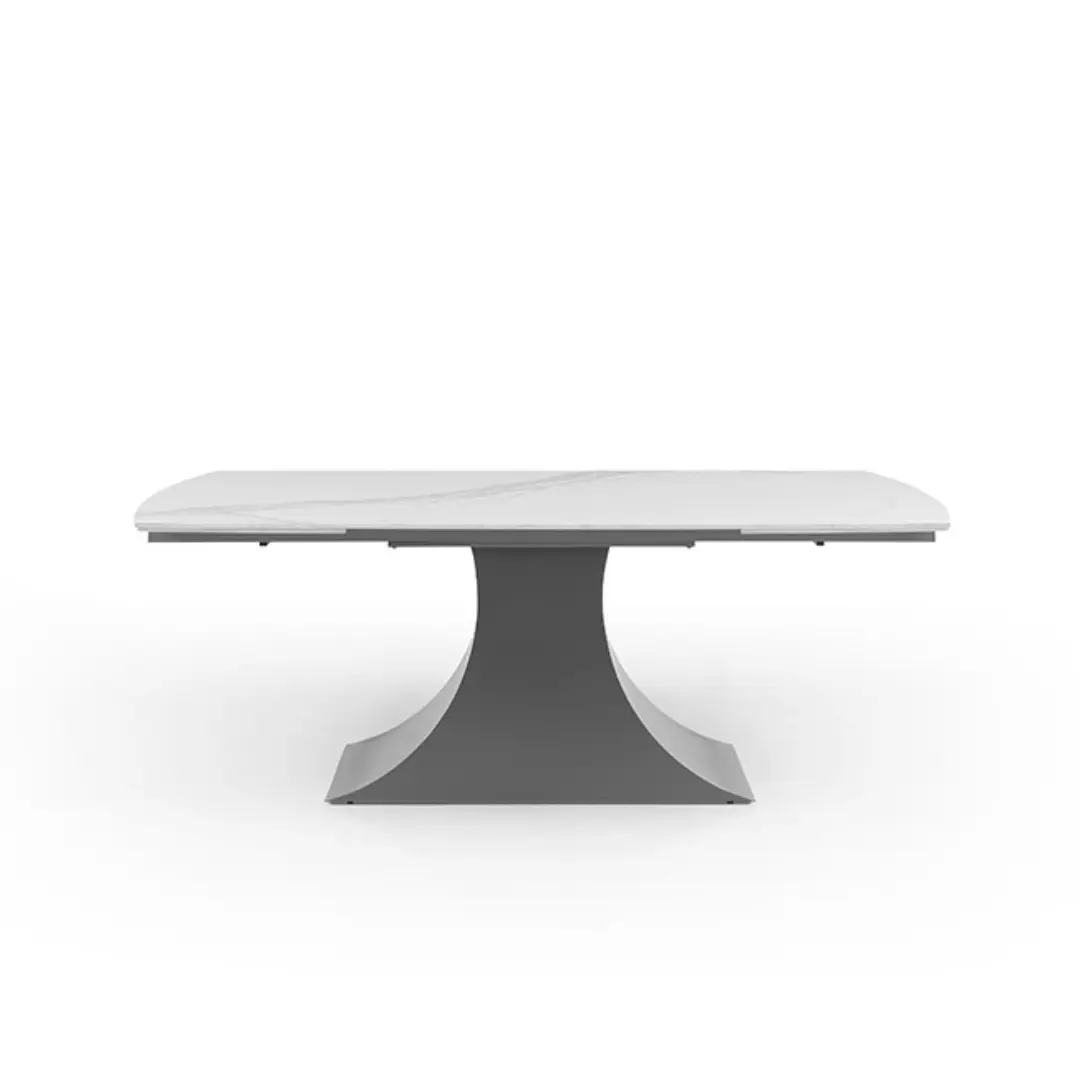 The 9437 Extendable Dining Table with a solid Chinese ceramic matte white marble pattern is a stunning and versatile piece of furniture designed to elevate your dining space. Crafted with precision and attention to detail, this dining table exudes sophistication and modern elegance.