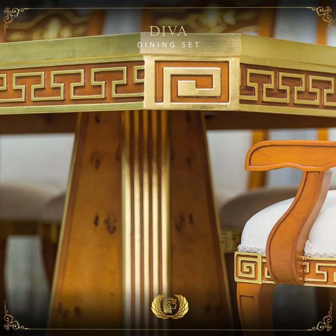 Diva Dining Set – Grand Elegance in Off-White, Brown & Gold
