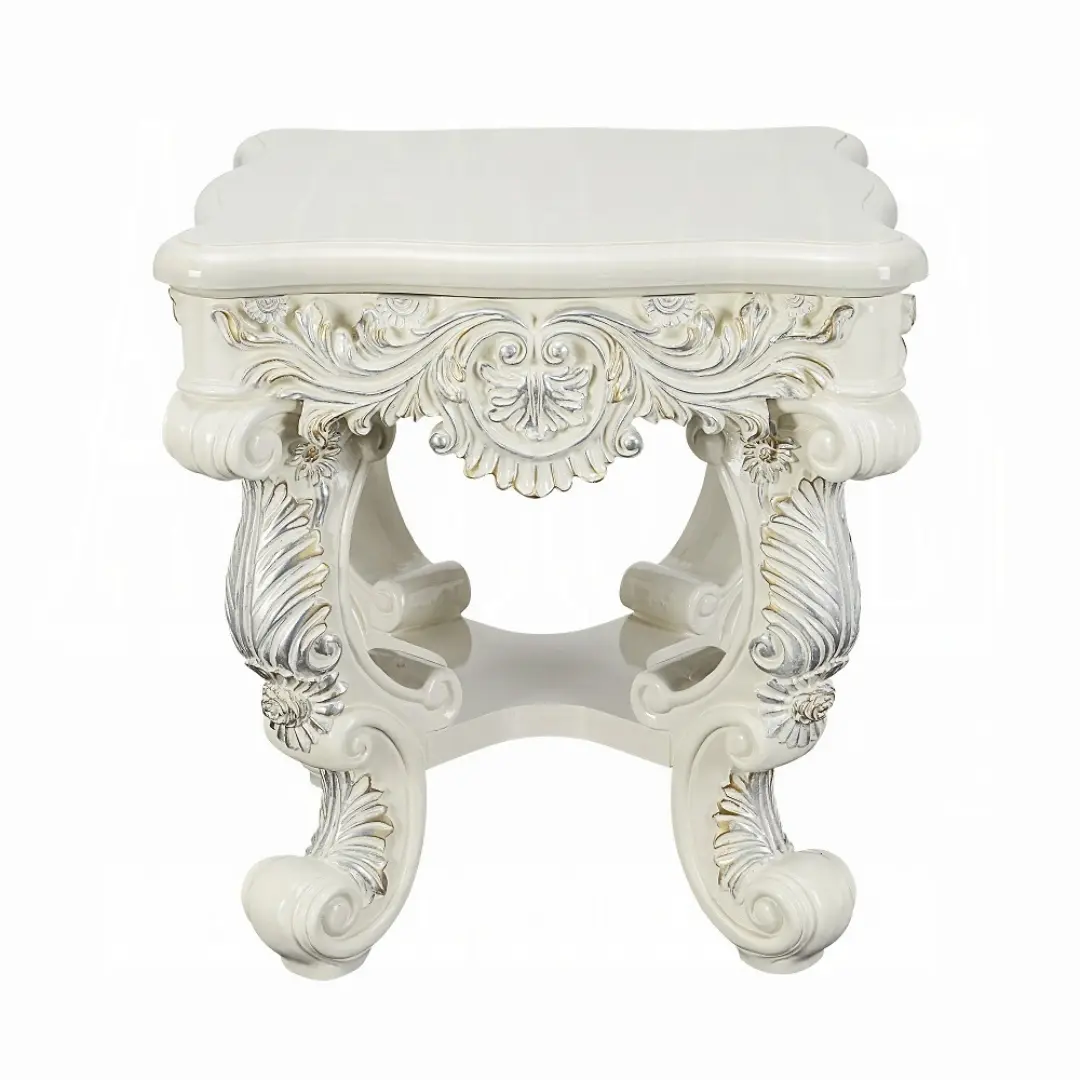 Add a refined touch of elegance to your living space with the White End Table from the Adara collection. Inspired by Persian artistry and classic design, this table combines intricate carvings with a soft antique white finish to create a timeless and sophisticated accent piece.