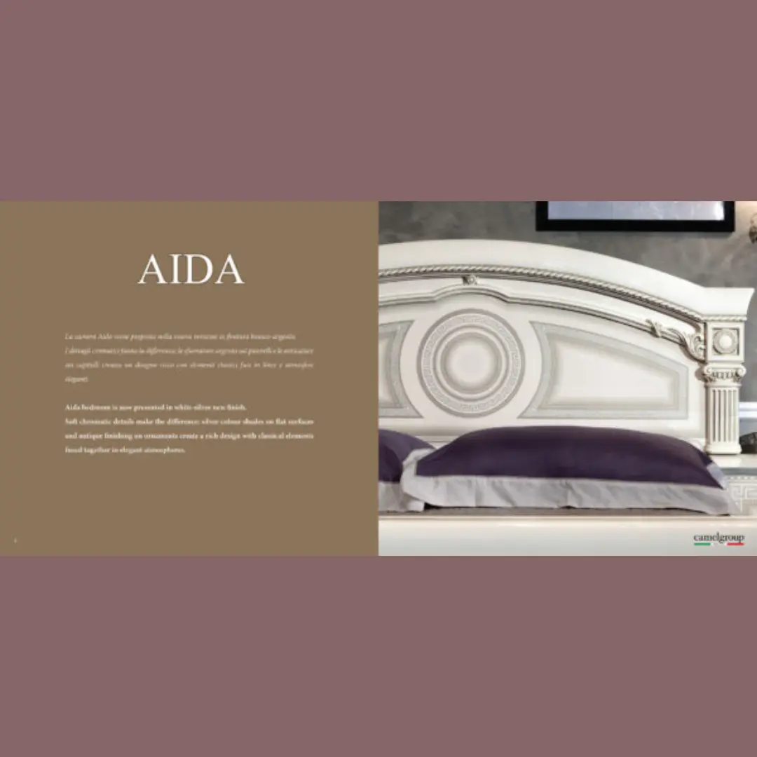 Your dream bedroom starts here. Choose the unmistakable glamour and quality of the High Gloss Lacquer Aida Bedroom Set, White w/Silver, from Camelgroup Italy. Available now at Mobilia Cleopatra Furniture — your trusted destination for European luxury furniture.