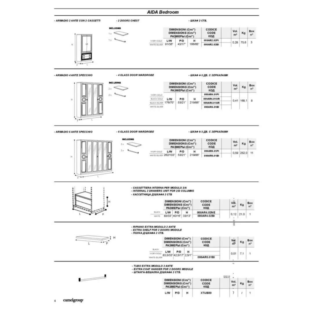 | Aida White w/Silver 4-Door Ward | 70″W X 21″D X 86″H |