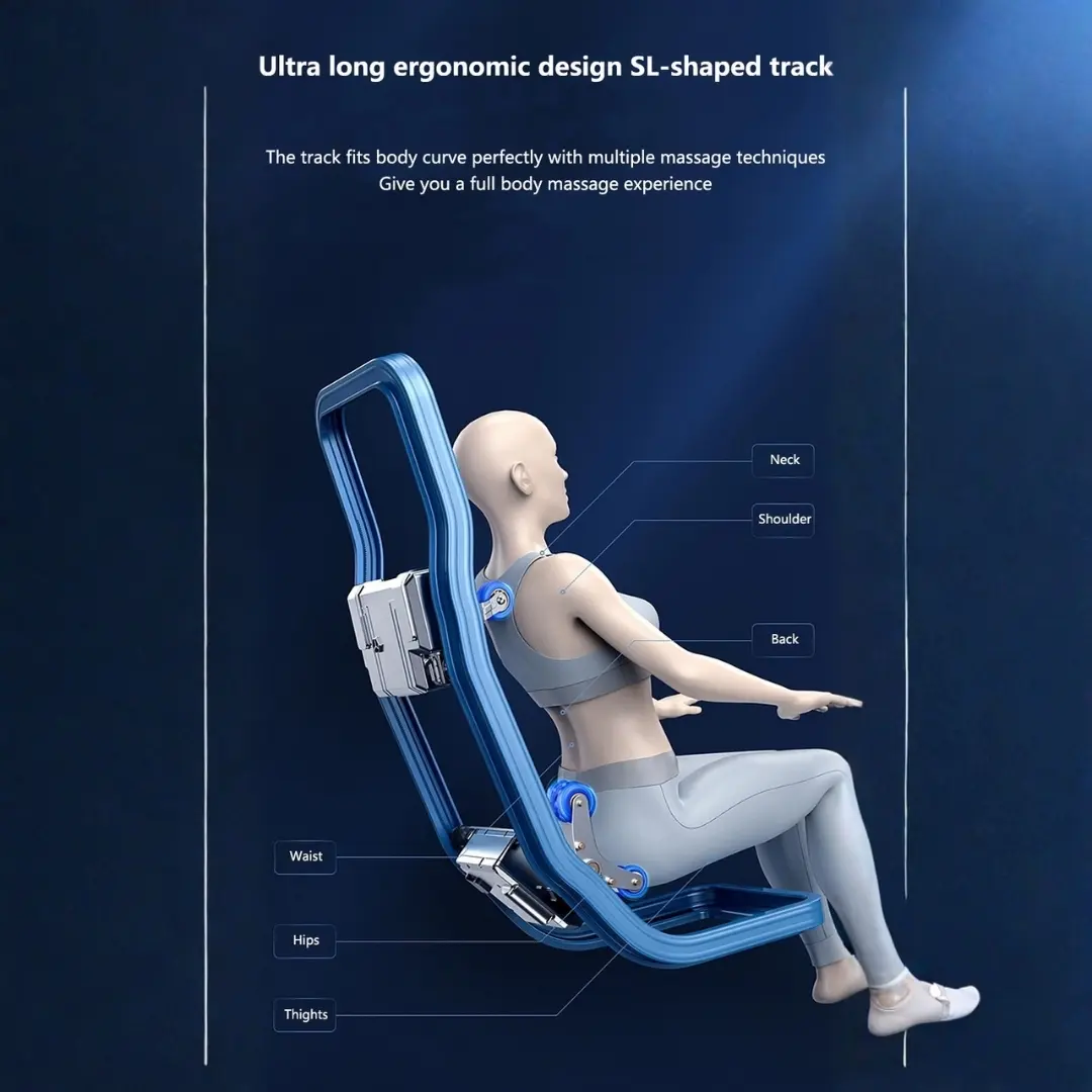 1. The extra-long SL-shaped track covers comfortably from head to buttocks, and the silicone massage head is soft and rebounds, making massage more comfortable.