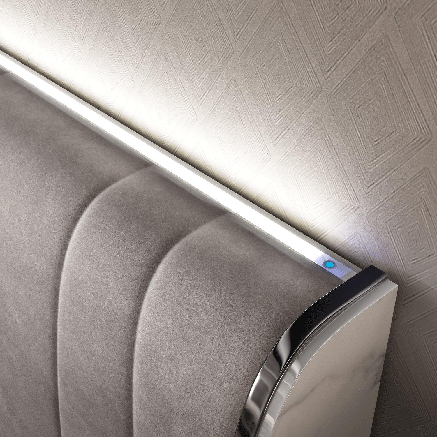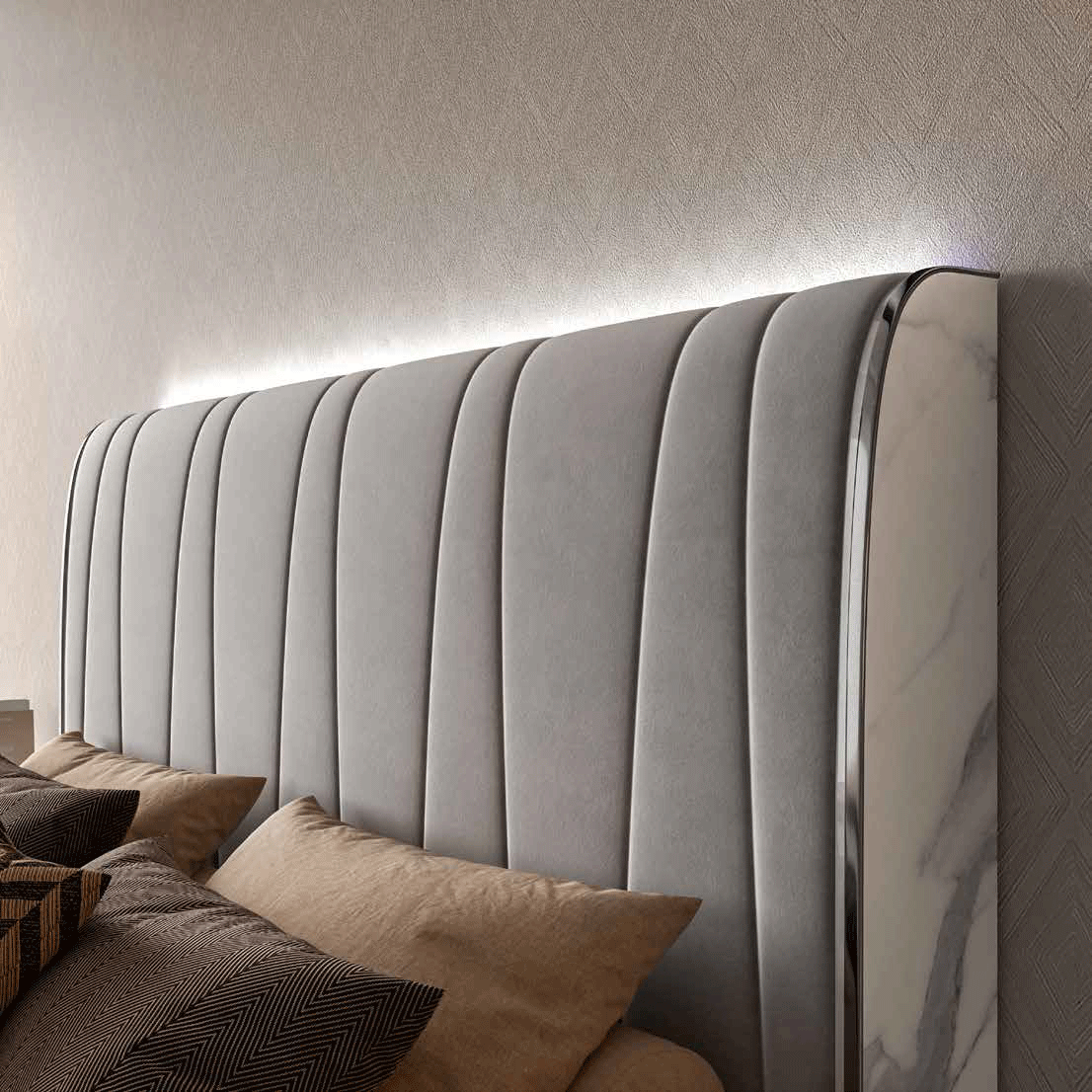Meticulously Made in Italy, the Anna Status Bedroom Set blends flowing curves with high-gloss lacquer finishes, delivering a sleek and sophisticated aesthetic. The bed’s oversized, enveloping headboard features sinuous lines and rounded contours that provide both comfort and a bold design statement. A built-in ambient light enhances the atmosphere, casting a soft, elegant glow that transforms your bedroom into a private sanctuary.