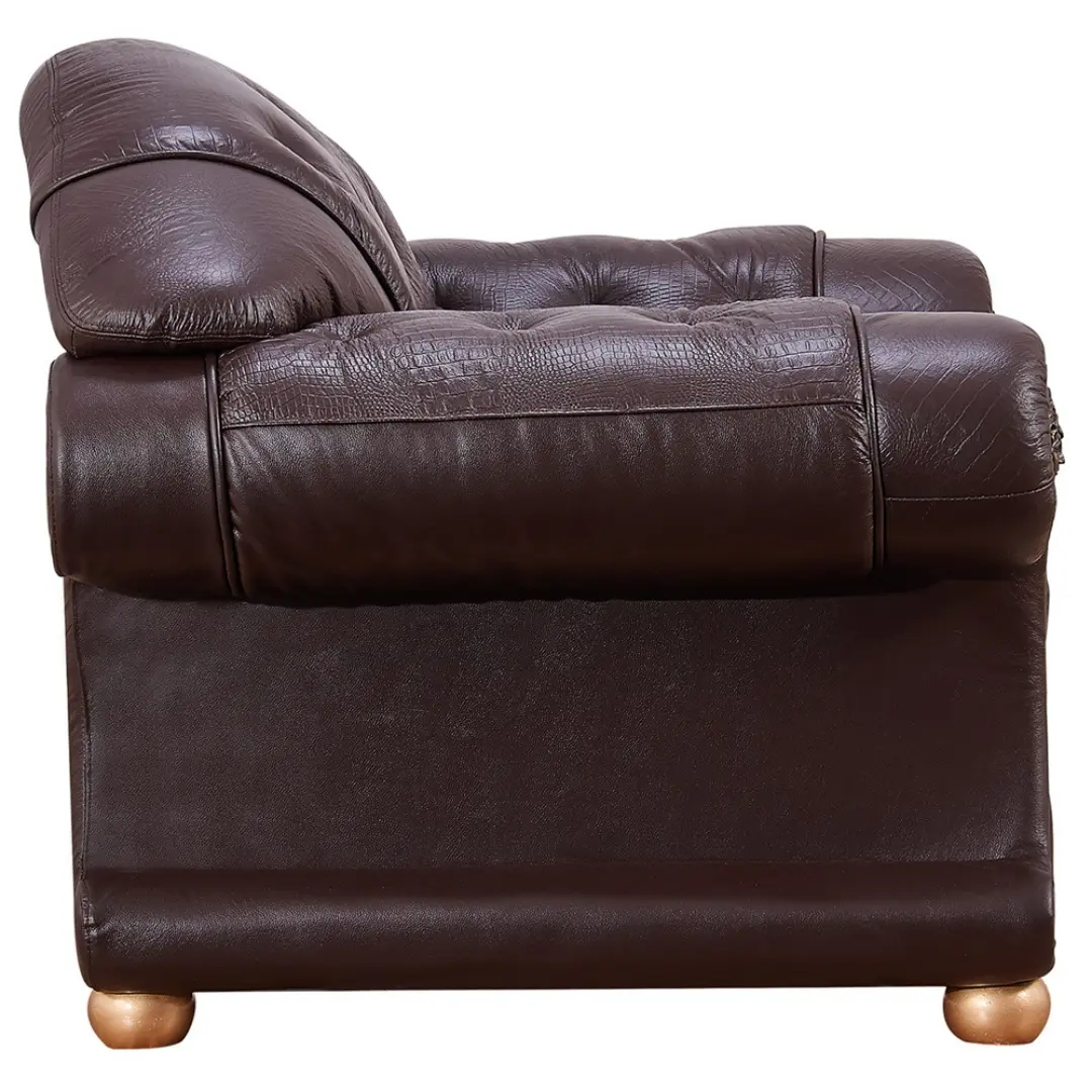 Constructed with a focus on long-lasting quality, the Apolo Brown P9137 features top-grain leather that envelopes the seating surfaces, delivering a smooth, supple feel. The back is finished with split leather for a balanced combination of durability and cost-efficiency — ideal for high-end residential or light hospitality environments.
