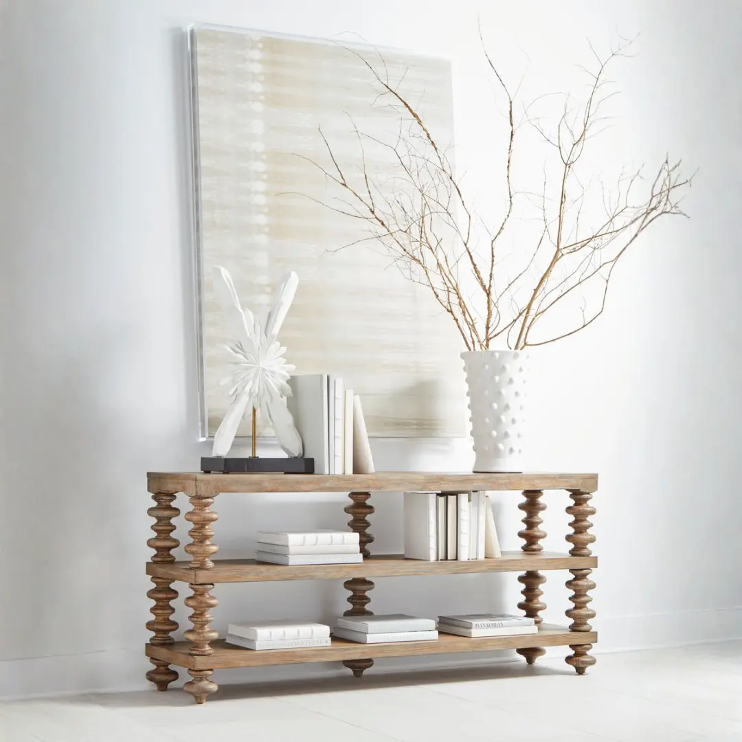 Elevate your interior with the Architrave-Almond Console Table by Art Furniture – a refined fusion of neoclassical design and rustic elegance. Expertly crafted to complement transitional and timeless spaces, this console table offers both visual charm and everyday functionality, making it the ideal accent for your living room, hallway, or entrance.