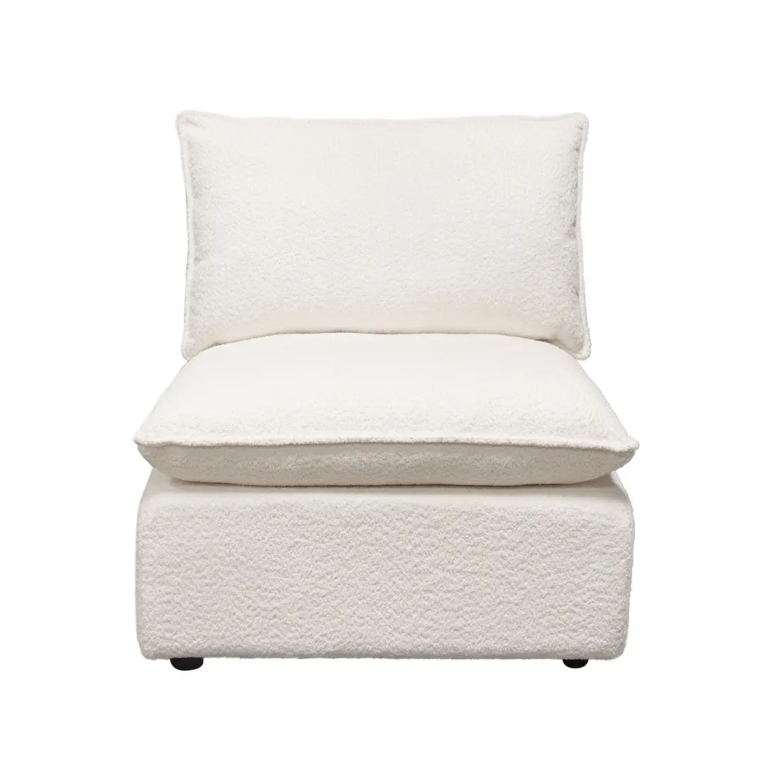 Elevate your living area with the Ivy Shearling Chair, a luxurious armless chair designed for ultimate comfort and modern elegance. Covered in soft, white faux shearling fabric, this chair offers a cozy, inviting touch while maintaining a sleek contemporary aesthetic. Perfect for modular living, the Ivy Chair easily pairs with the Square Corner Chair and Ottoman to create countless seating configurations.