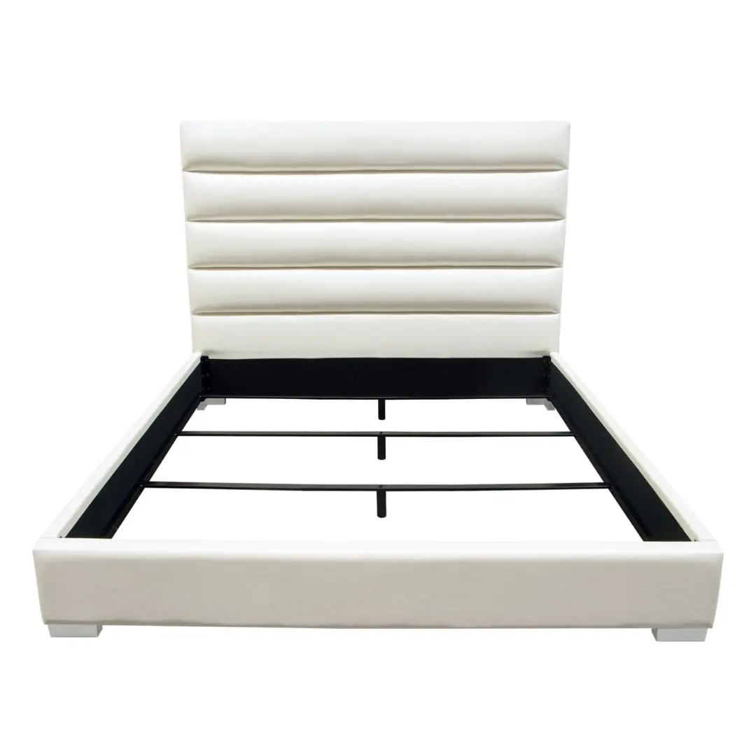 Elevate your bedroom with the Bardot Channel Queen Bed Tufted by Diamond Sofa. Featuring a deep channel tufted headboard, this bed adds a touch of timeless elegance and modern sophistication to any well-designed space. The premium white leatherette finish offers a sleek, textured look that complements contemporary décor styles effortlessly.