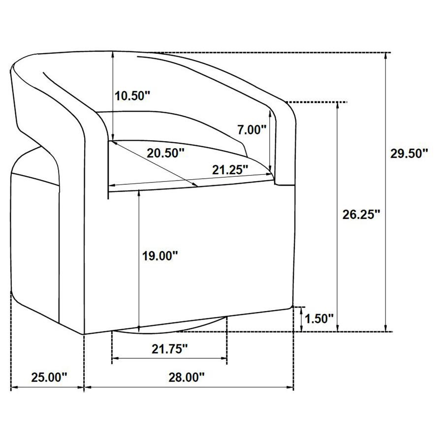 Whether used in a reading nook, layered into a living room set, or placed in a home office, this swivel accent chair fits right in — especially where soft lines and mobility matter. Its compact footprint makes it an excellent choice for smaller rooms or open floor plans.
