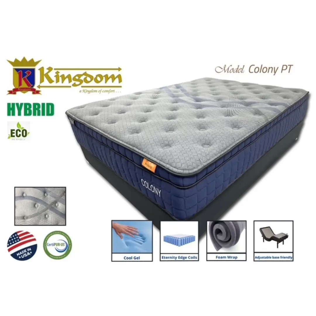 Experience the refined comfort and reliable support of the Kingdom Colony PT Mattress Firm. This model blends the plush comfort of a pillow-top with the steady structure of a firm mattress — making it an excellent choice if you want the best of both worlds: cushioning on the surface, stability beneath.