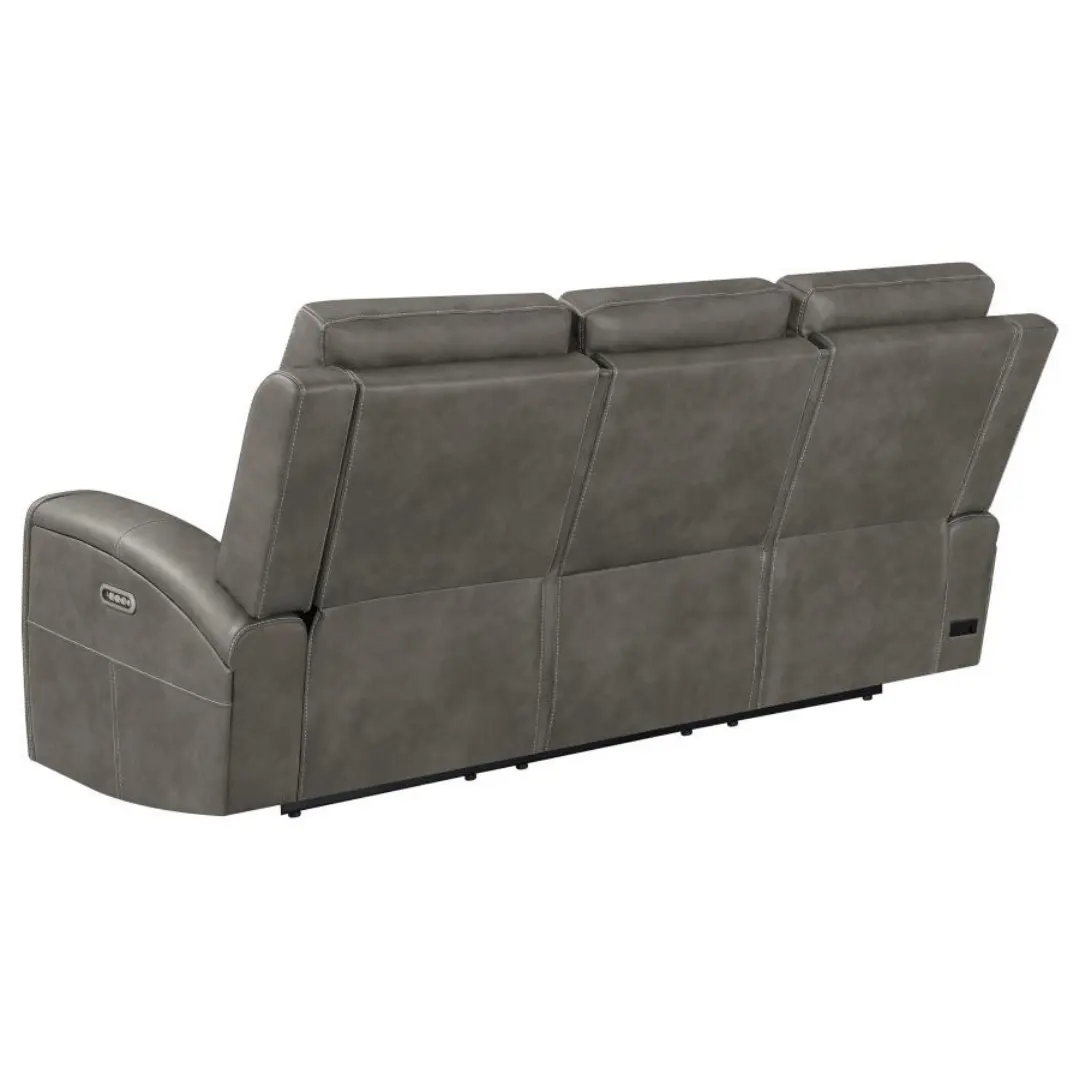 Upgrade your living space with this power reclining sofa, designed to deliver a seamless blend of luxury, innovation, and everyday comfort. From its sculpted silhouette to its intelligent features, this sofa transforms relaxation into a personalized experience. Upholstered in soft leatherette with refined contrast stitching, it introduces a sophisticated yet inviting presence into any modern or transitional home.