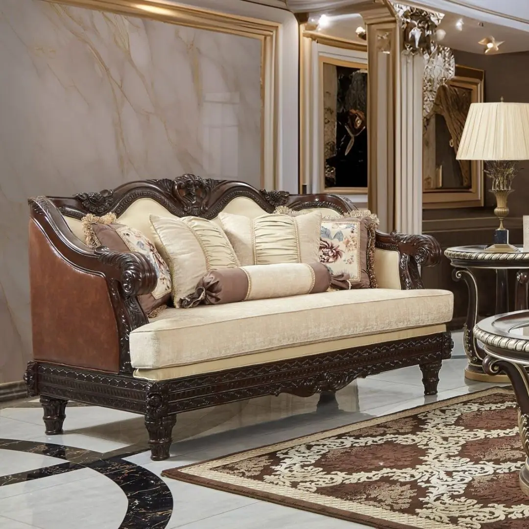 Engineered for those with a discerning eye, the HD-386 stands apart through its harmonious blend of hand-carved detailing, rich textures, and balanced composition. Constructed with a resilient solid wood frame, each piece is finished in a deep brown cherry tone, underscoring the set’s old-world charm while allowing it to complement transitional and classic themes alike.