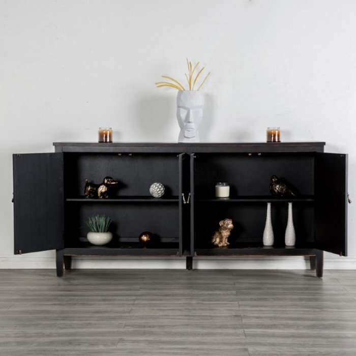 Viggo 4 Door Cabinet Modern Farmhouse Weathered Black by Furniture of America