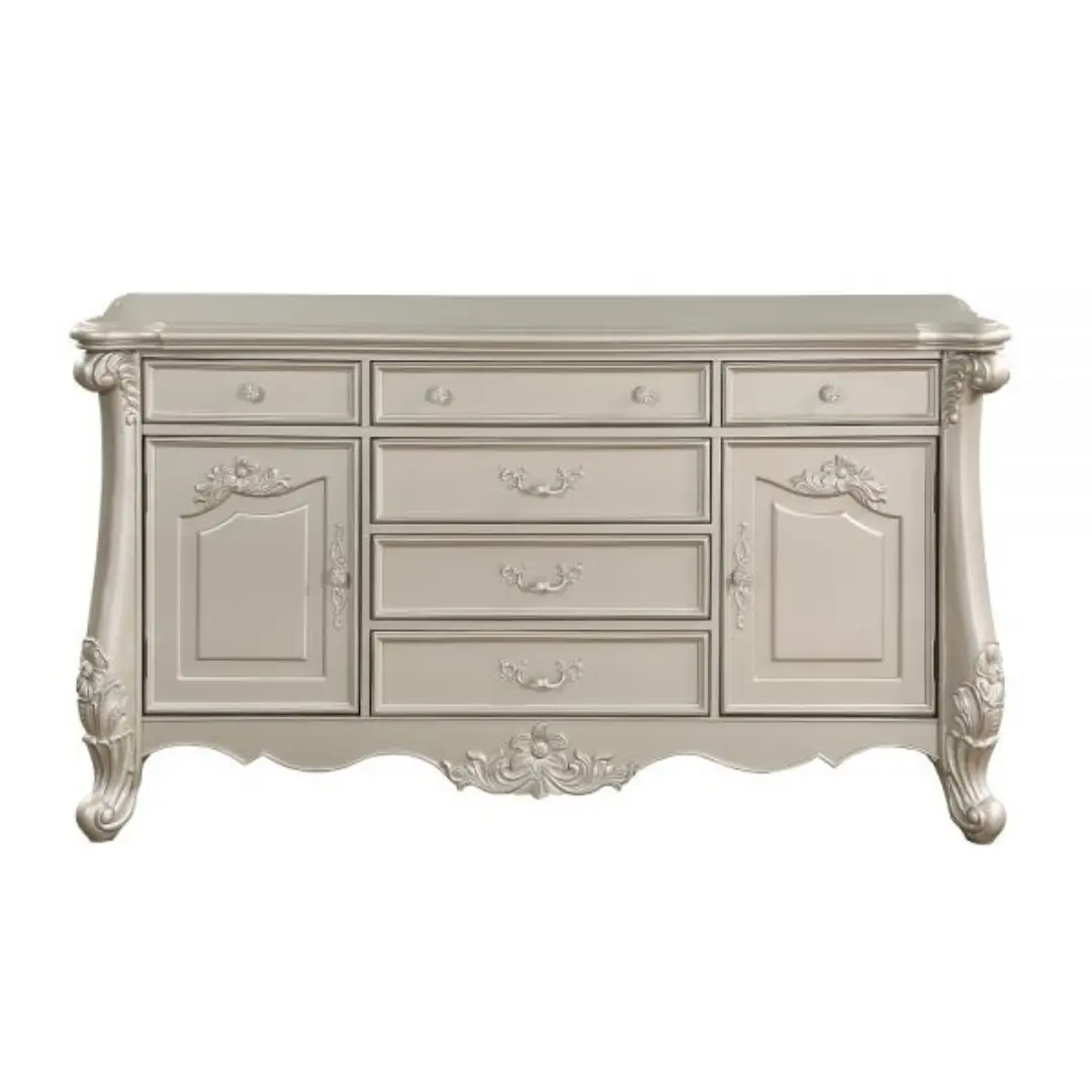 The Champagne Bently Dresser BD02292 by ACME is part of a prestigious bedroom suite known for its romantic aesthetic and durable construction. Whether placed in a modern classic, transitional, or French country setting, this piece creates a timeless focal point that elevates your interior scheme with its exquisite craftsmanship and practical storage functionality.