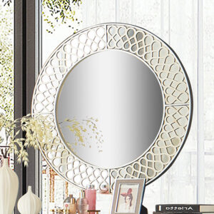 Perfectly suited for placement above a dresser or as a standalone decorative statement, the HD‑6000 mirror is built on a durable wood and composite frame. Its premium metallic finish subtly reflects light to visually expand your space and enrich the room’s ambiance. The ornate yet refined design integrates beautifully with upscale interiors, acting as both a functional mirror and an artful wall centerpiece.
