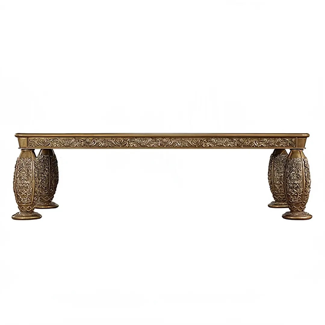 The Wooden Dining Table is designed with intricate scrollwork and classical Baroque influences, delivering a bold and luxurious presence in any dining room. Its sculpted base and golden accents highlight craftsmanship at a royal level.