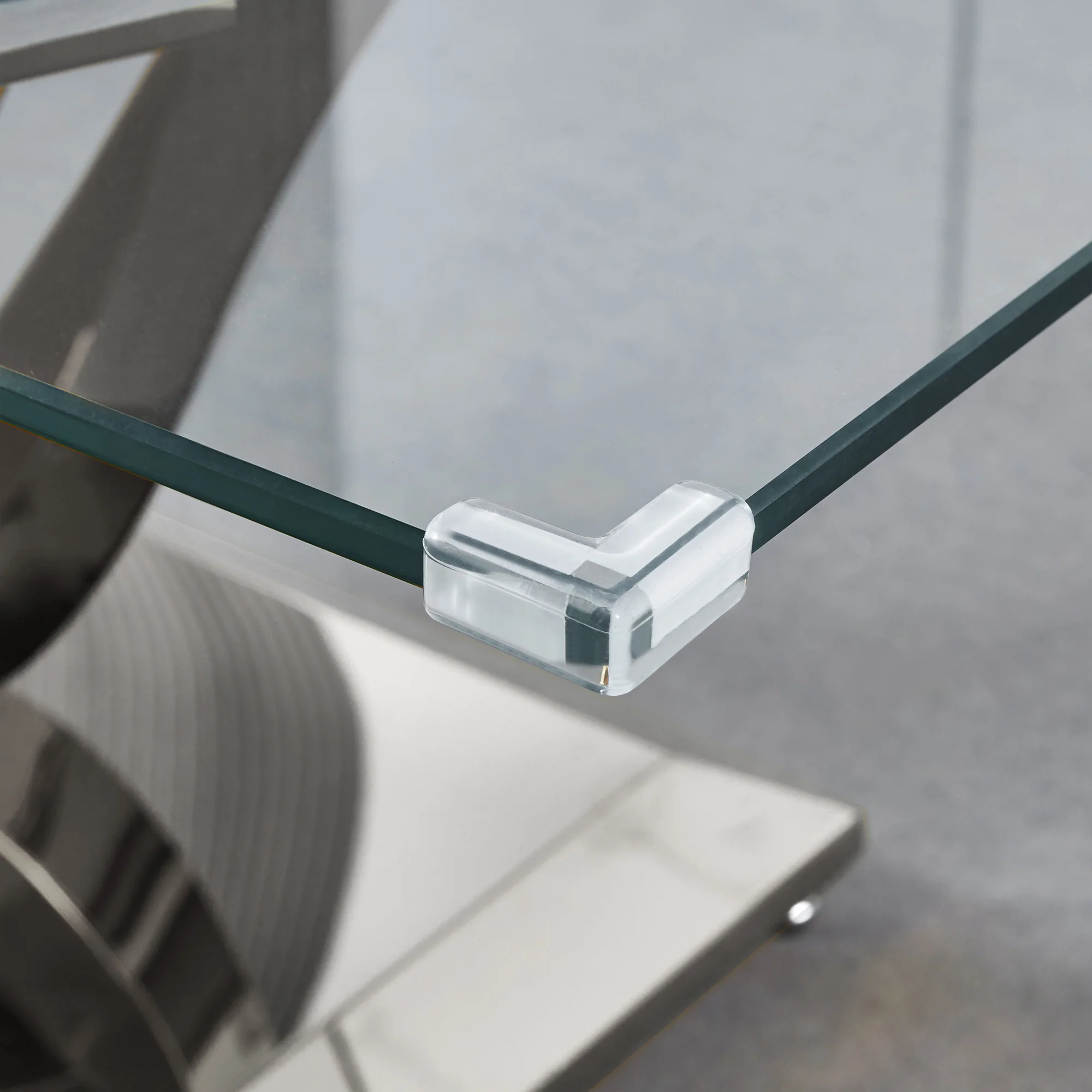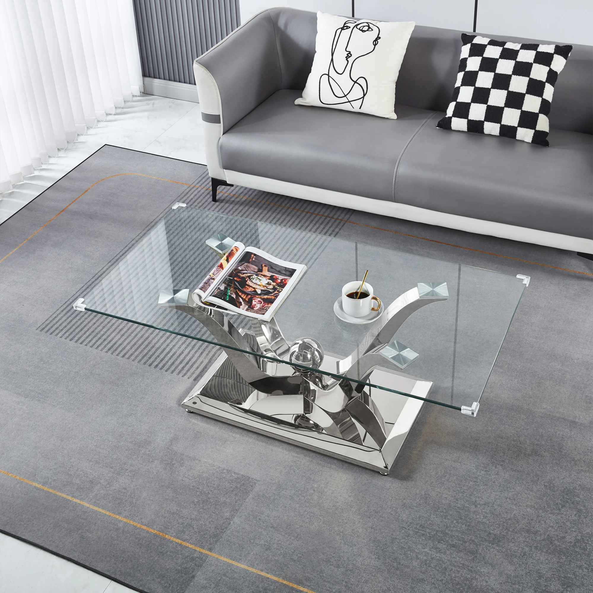 The rectangular glass table top of this exquisite coffee table brings a touch of modern elegance to any living space. Crafted from 10mm tempered glass, it offers both durability and sophistication, making it a stunning centerpiece for your home. The base, constructed from high-quality 201 stainless steel, is finished in a luxurious gold or silver mirrored polish, reflecting light beautifully to create an open and airy feel. Whether you’re hosting guests or enjoying a quiet moment, this coffee table seamlessly blends functionality with opulent design, elevating your décor with its sleek and contemporary charm.