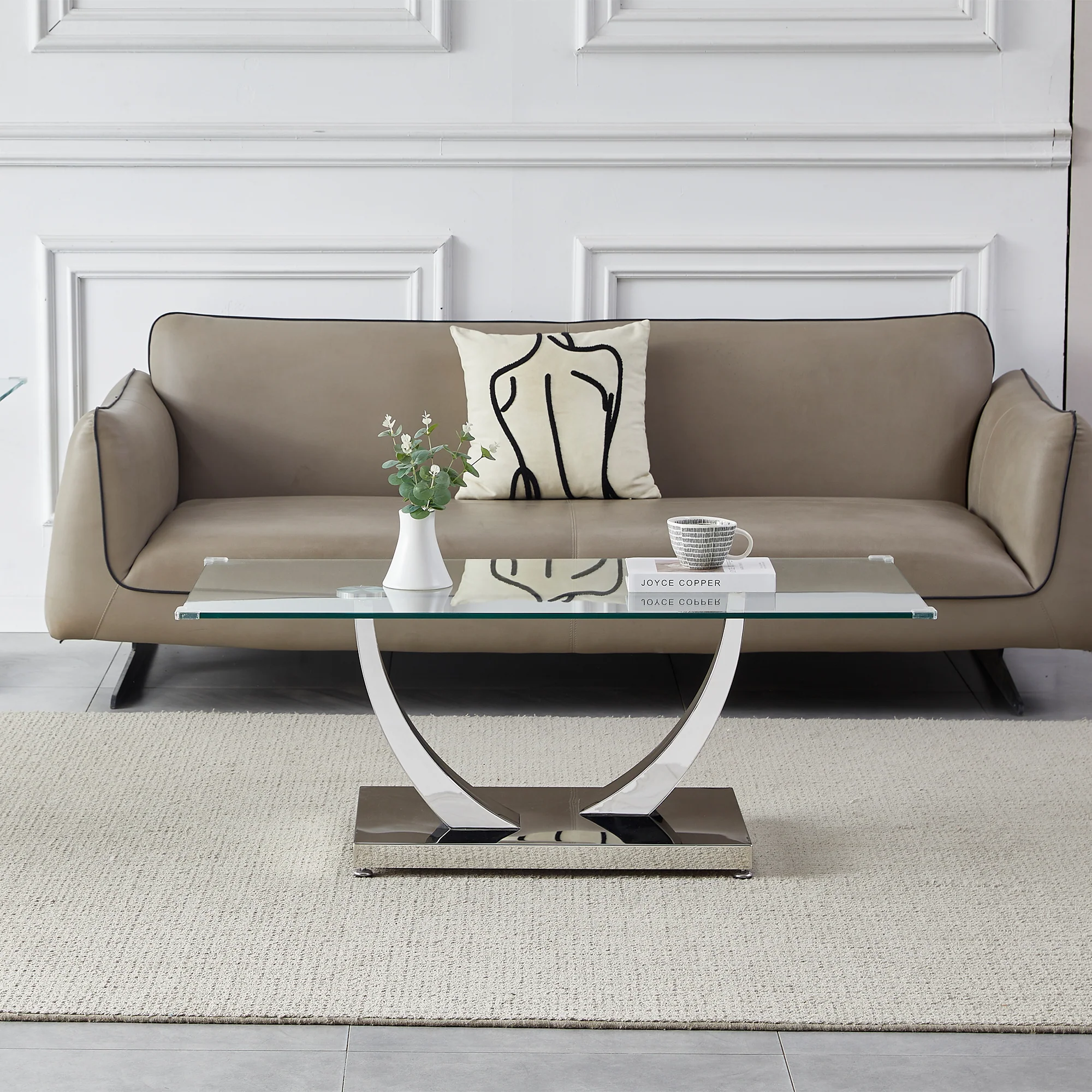 A glass beveled table top adds a touch of sophistication to any space, and this coffee table takes it to the next level. Crafted with a 10mm tempered glass surface, it combines durability with elegance, ensuring both style and strength. The 201 stainless steel base, available in a gold or silver mirrored finish, creates a luxurious reflection that enhances the beauty of your living room. Whether you’re serving coffee or displaying décor, this table is designed to impress with its sleek, modern appeal and timeless craftsmanship.