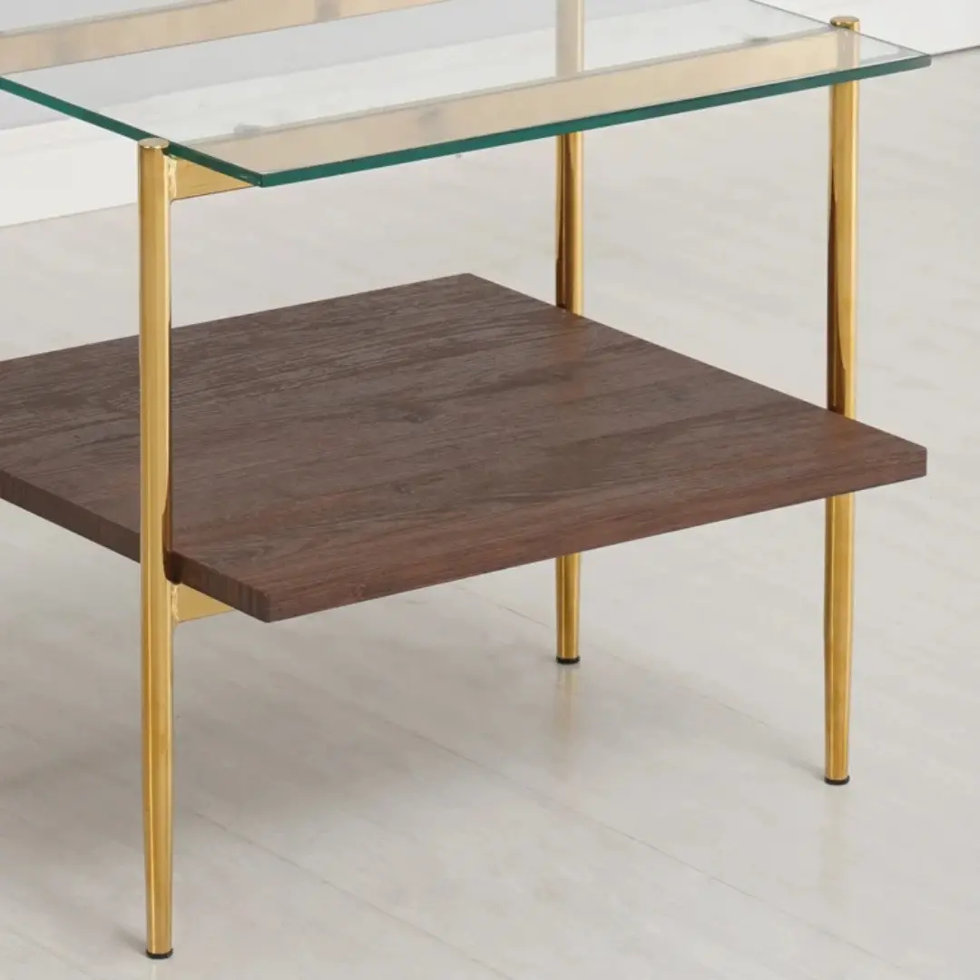 - Premium Materials: Built with a clear, tempered glass top that rests gracefully over a richly textured, wood-finished MDF base.