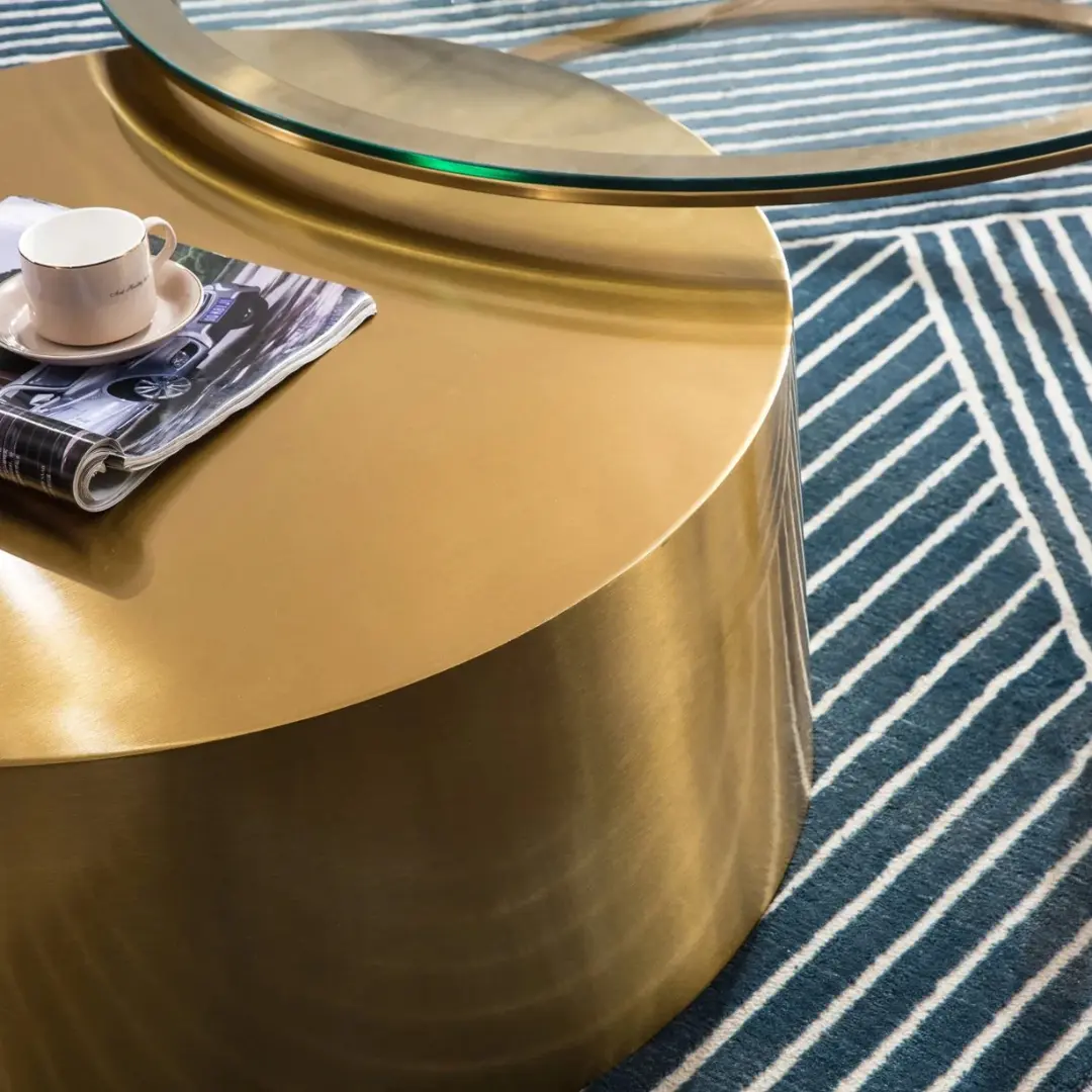 Each table showcases a spacious 10mm clear tempered glass top that’s as durable as it is elegant, offering a clean, minimalist surface that visually expands any room. Nestled beneath, the radiant gold mirrored stainless steel base — manufactured from heavy-duty 201-grade steel — introduces a high-end statement with reflective brilliance.