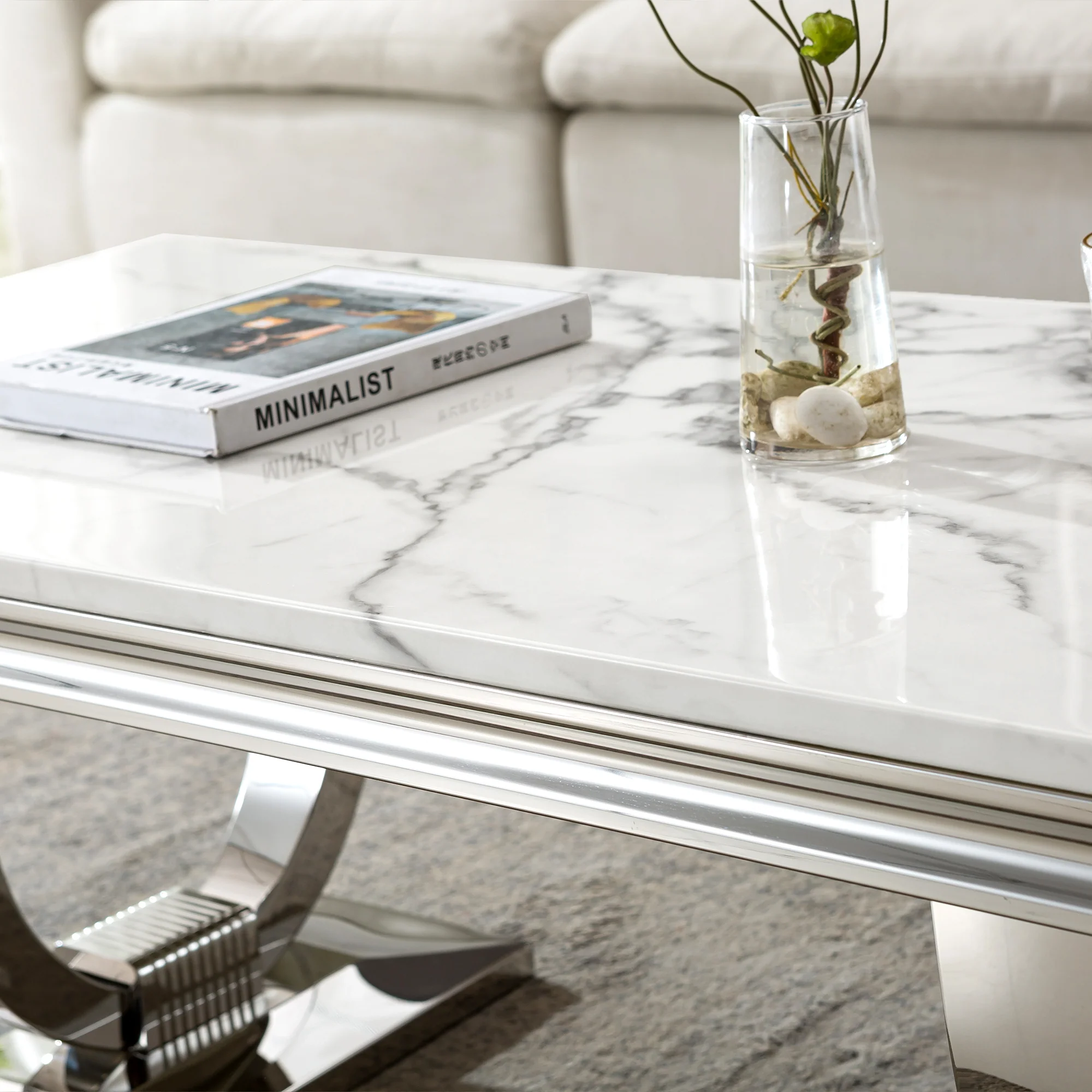 This sectional sofa coffee table is the epitome of elegance and craftsmanship, designed to complement modern and classic interiors alike. Featuring a luxurious 18mm white or black marble top, it exudes natural beauty with a sophisticated edge. The 201 stainless steel base, available in a gold or silver mirrored finish, enhances its opulent appeal while reflecting light for a radiant, spacious feel. Whether placed in the heart of your living room or paired with a stylish sectional, this artisan-crafted table is a statement piece that seamlessly blends luxury with functionality.
