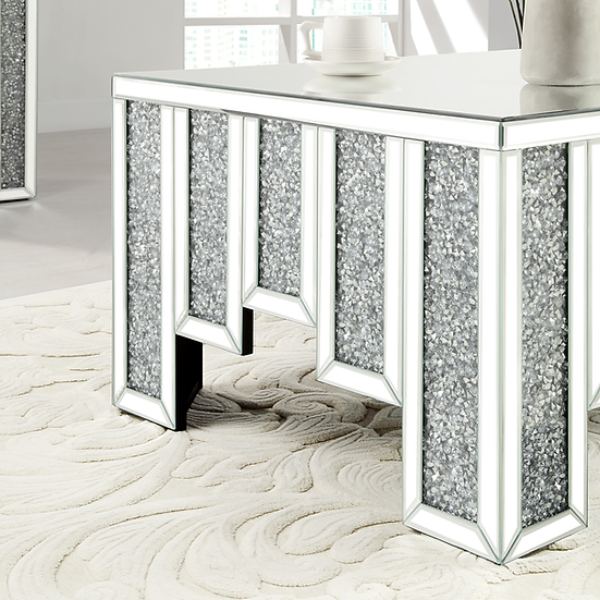 designed to perfectly complement and enhance your living space. This elegant Coffee table, crafted from high-quality MDF and finished with a stunning silver mirror, adds a touch of modern sophistication to your sectional arrangement. Its clean, rectangular design provides ample surface area for drinks, decor, or everyday essentials, making it as practical as it is stylish. The reflective silver finish creates a bright, luxurious ambiance, while the craftsmanship of this artisan table ensures a timeless, versatile addition to your home. Elevate your living room with this exquisite piece that blends form and function effortlessly.
