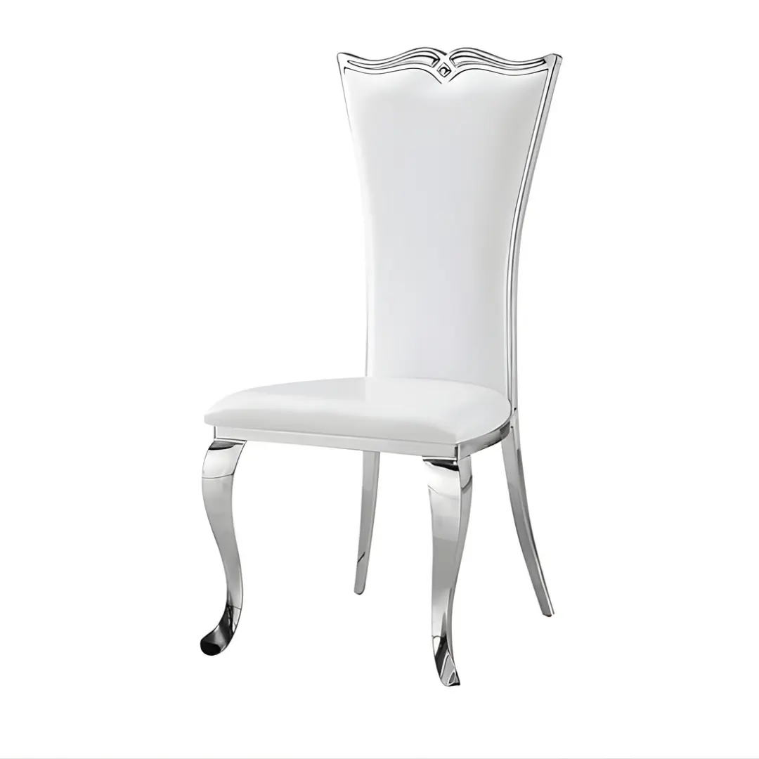 The clean lines of the sculpted PU leather seat are paired with a sleek stainless steel frame, offered in your choice of a polished silver chrome or opulent gold chrome finish. This luxurious contrast adds renewed depth and sophistication to your dining ensemble, making every meal an occasion to remember.