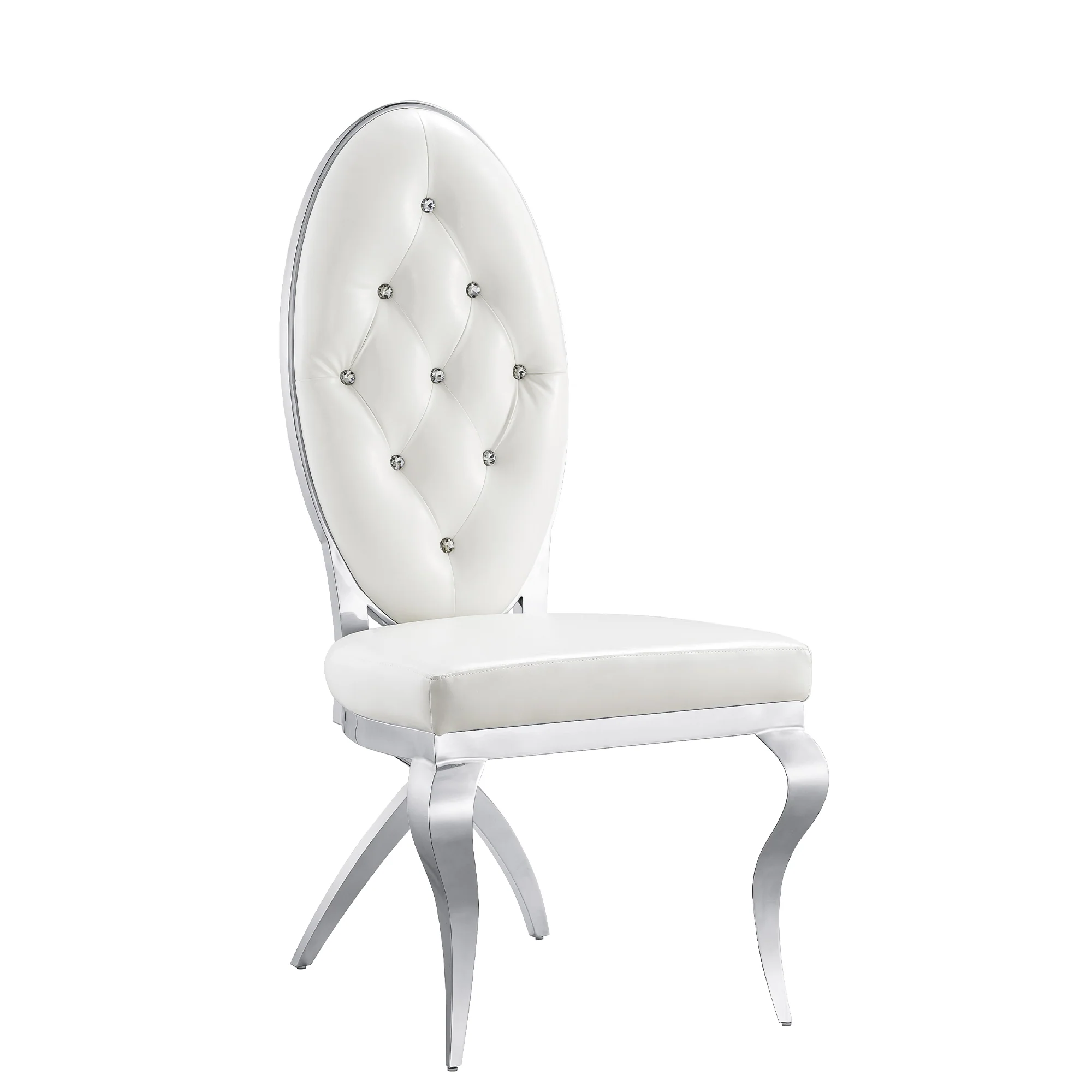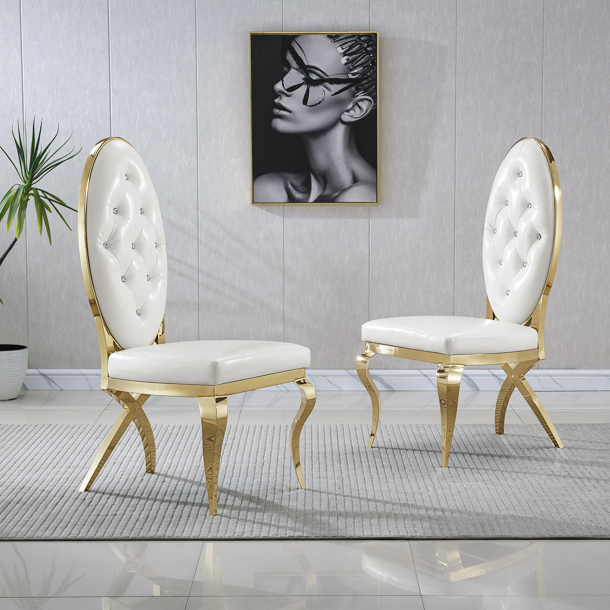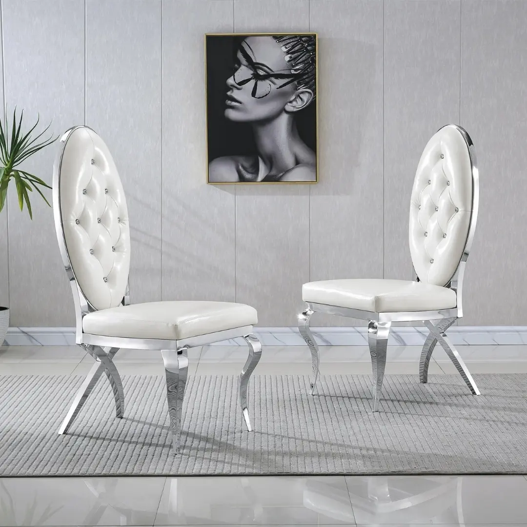 Each chair is carefully constructed from premium 201-grade stainless steel and features sleek lines accented by either a radiant gold or a sophisticated silver mirrored finish. The dynamic frame contrasts beautifully with your choice of high-quality leatherette upholstery in timeless white or dramatic black. Whether situated in a high-end contemporary space or a refined classic setting, this chair brings harmony, luxury, and visual allure to any room.