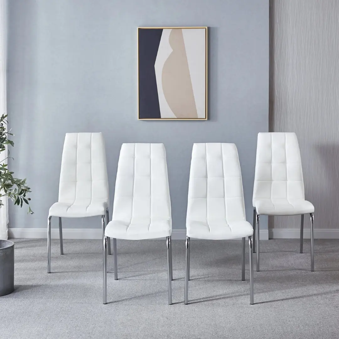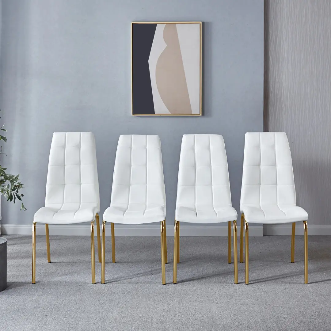 Upholstered in premium PU leather, it offers a supple texture that mimics the luxury of genuine leather while being exceptionally easy to maintain—ideal for high-use dining spaces and style-conscious homeowners alike. The high-density padding wrapped in smooth leather provides elevated seating comfort, making long dinners and conversations a pleasure.