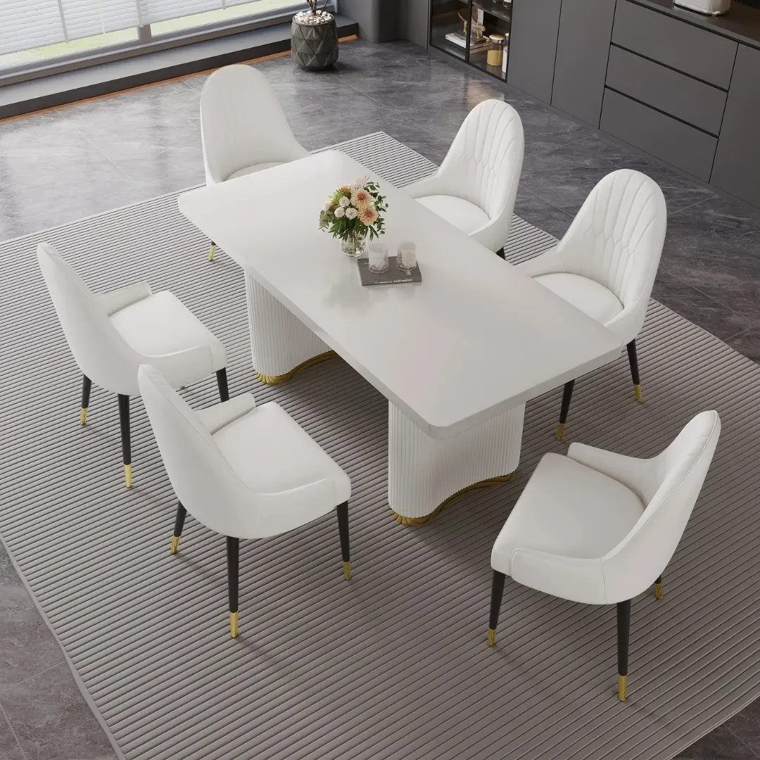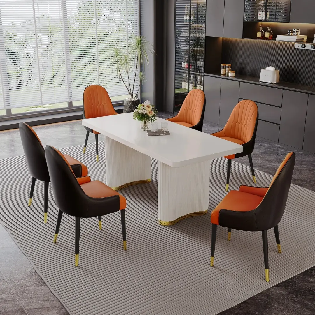 These leather dining chairs with metal legs are thoughtfully designed to complement both minimalist and eclectic interiors. Whether paired with a glass-top table, a rustic wood setting, or a marble slab, they elevate the atmosphere without overpowering the space. The armless silhouette gives your room a light, open feel — perfect for loft apartments, design-forward homes, or high-end condo dining rooms.