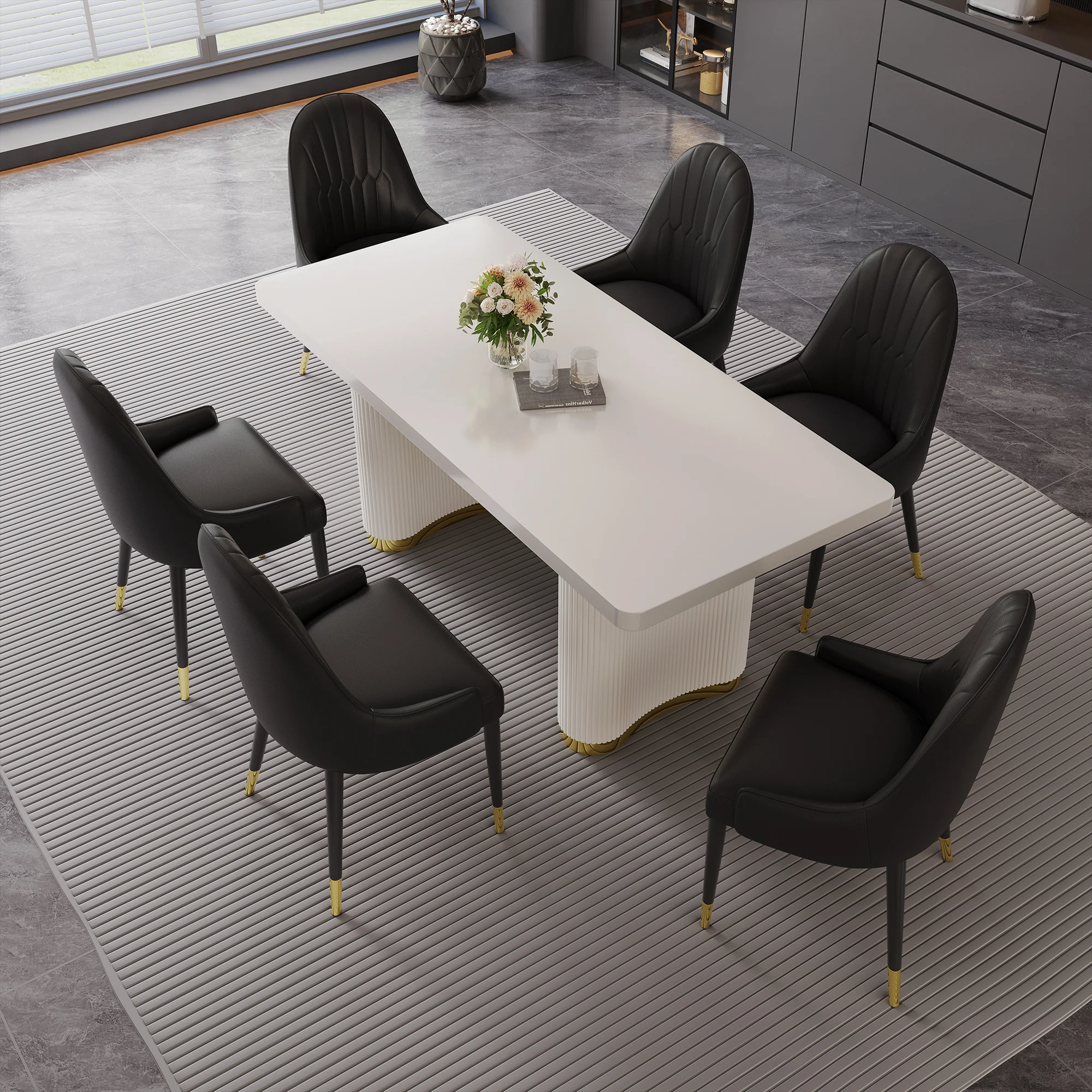 Enhance your dining experience with our leather dining chair with metal legs, where modern sophistication meets ultimate comfort. This set of two features sleek black leatherette upholstery that exudes elegance while ensuring easy maintenance. The sturdy black metal legs provide a bold, industrial-inspired look with exceptional durability. Designed for both style and support, these chairs are the perfect addition to any contemporary dining space, making every meal a statement of luxury and refinement.