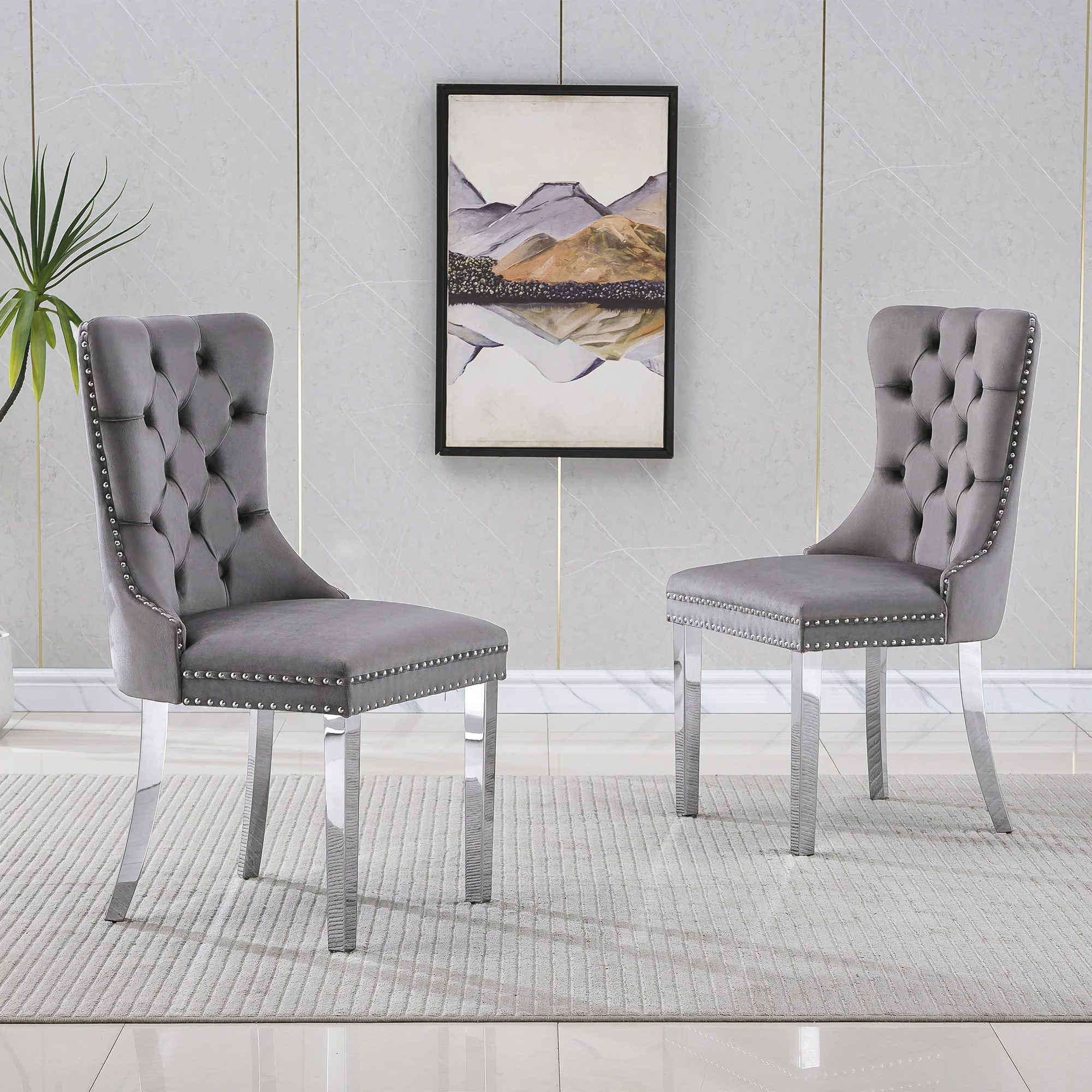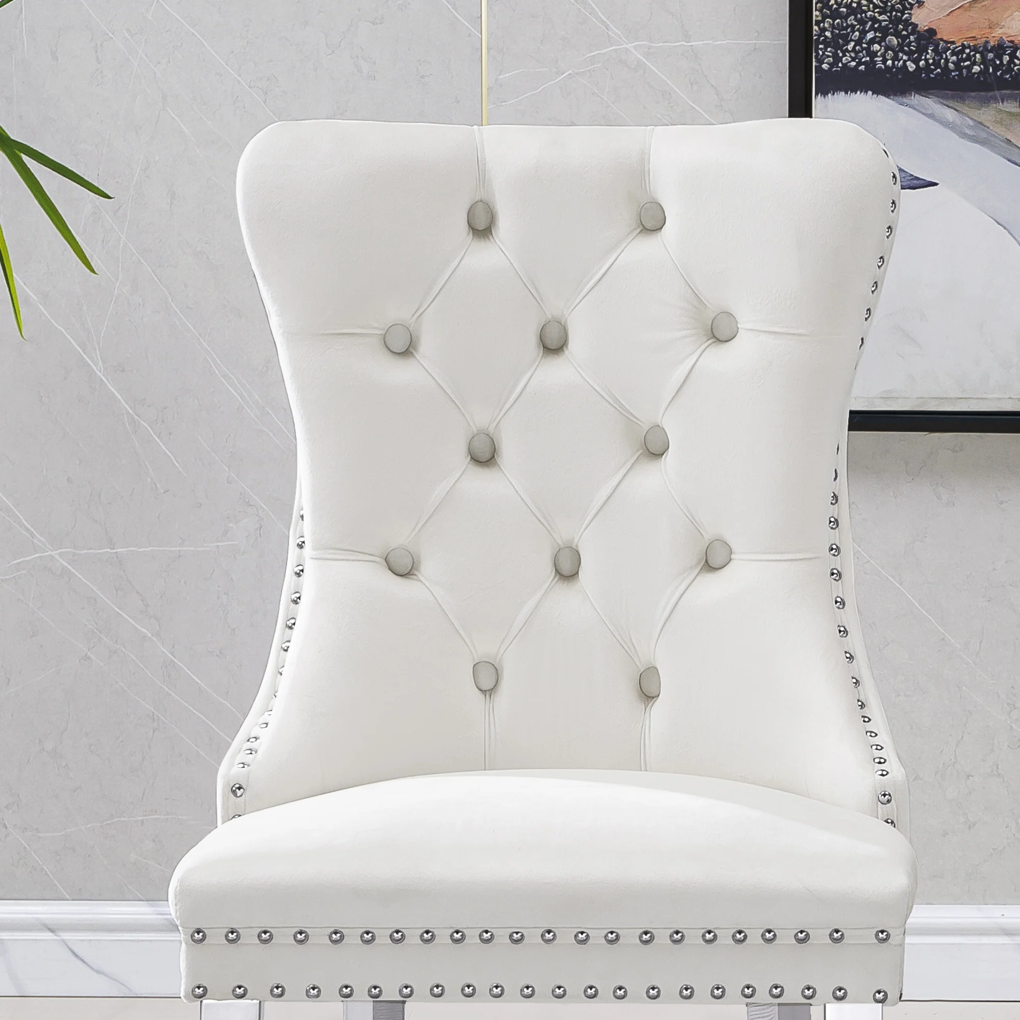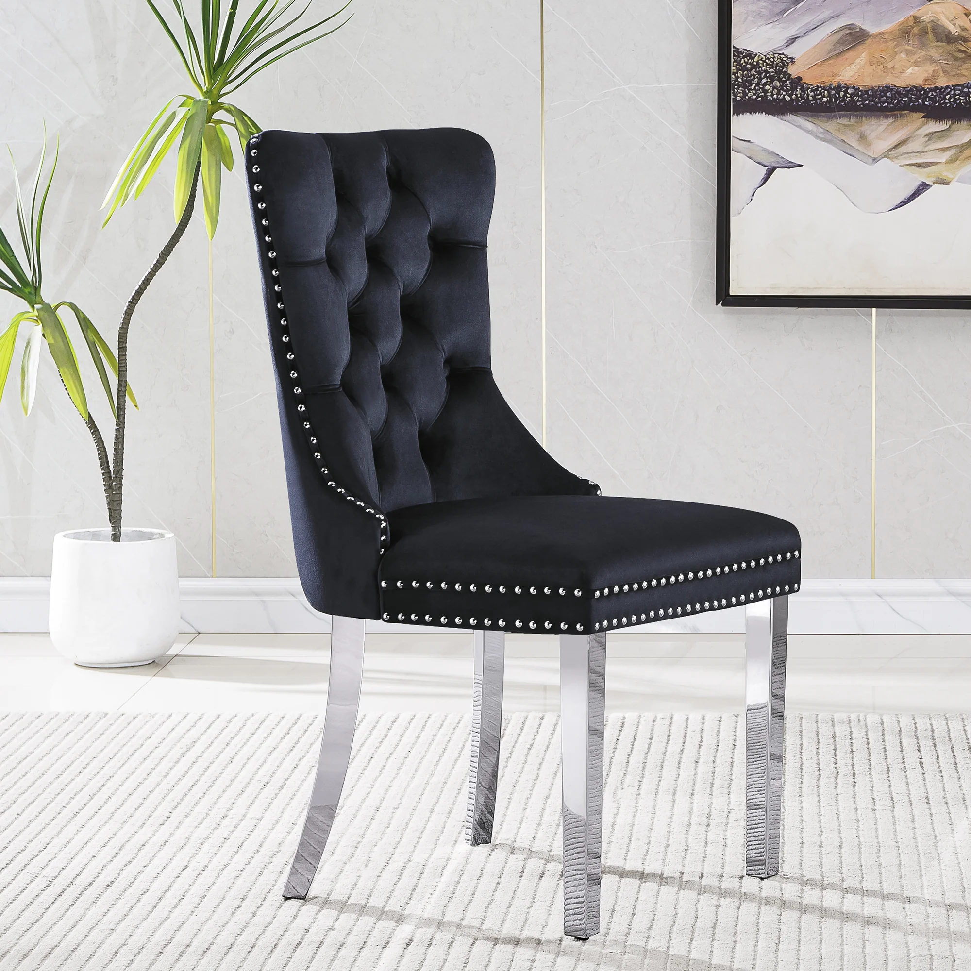 Make a bold statement in your dining space with this Stainless Steel Dining Chair set, where modern luxury meets timeless elegance. Designed for those who appreciate both comfort and sophistication, these chairs feature plush velvet upholstery in a refined palette of white, black, and gray, seamlessly blending into any décor. The sturdy 201 stainless steel frame ensures lasting durability, while the exquisite gold and silver mirrored finish adds a striking touch of glamour. Whether you’re hosting an intimate dinner or a grand gathering, these chairs offer the perfect balance of style, support, and contemporary charm, making every meal a truly refined experience.