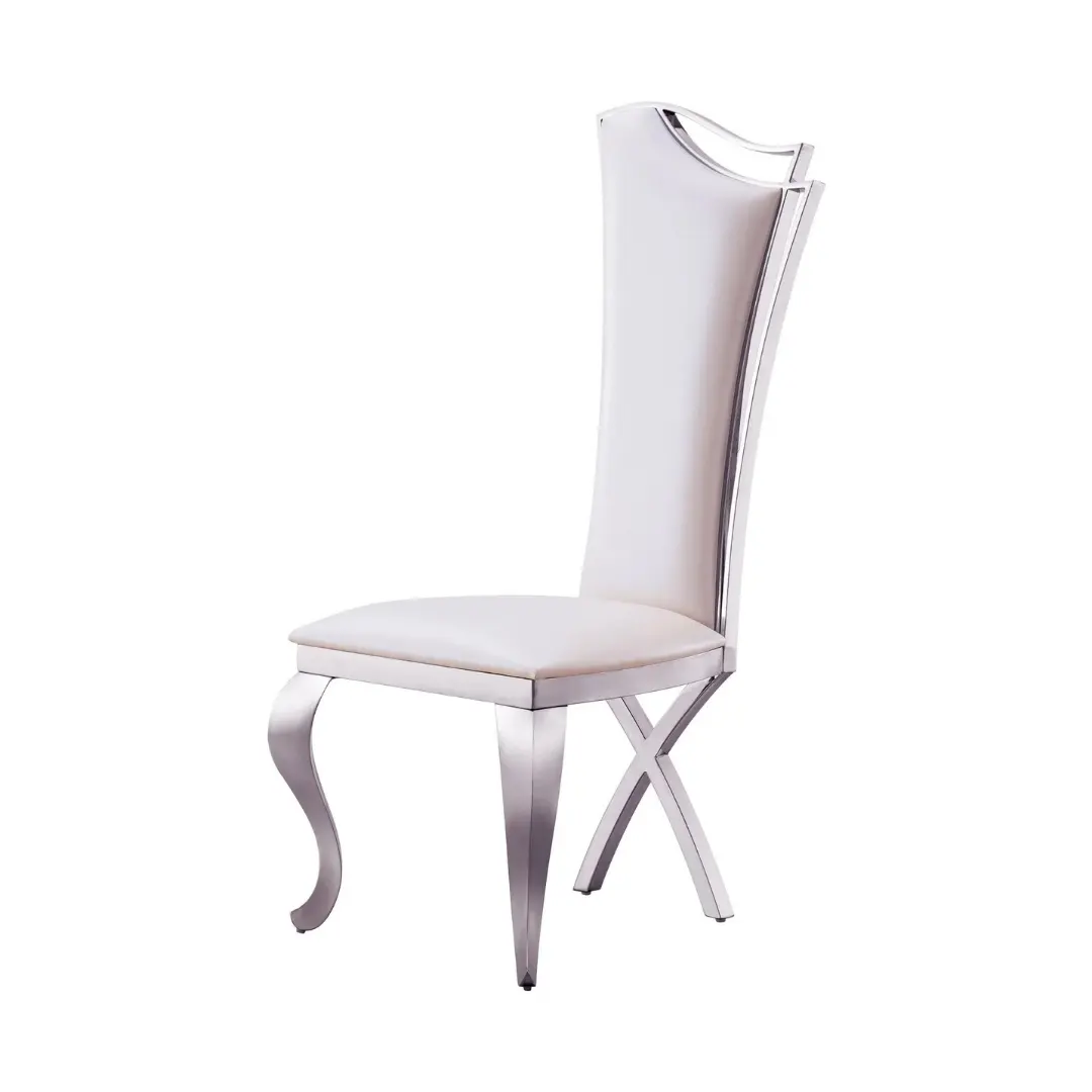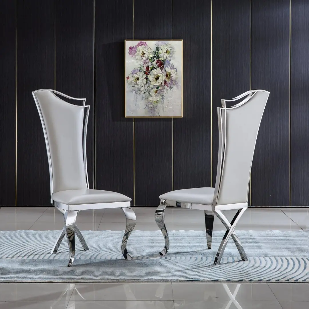 Expertly upholstered in supple white leatherette, these dining chairs offer more than visual appeal — they’re also a practical solution for everyday living. The stain-resistant PU ensures easy cleaning, while the polished 201 stainless steel frames, available in gold or silver mirrored finishes, deliver long-lasting performance and a gleaming shine that catches the eye from every angle.