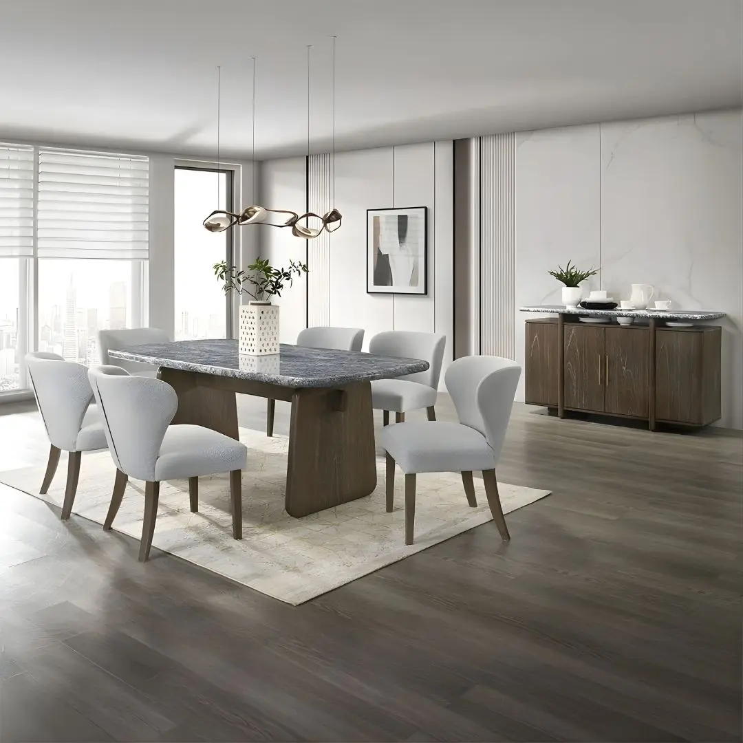 Transform your dining space with the Dillon Server with Natural Marble Top, a refined piece that blends luxurious materials with functional design. Crafted to complement the Dillon dining table and chairs, this buffet server delivers both storage and visual elegance.