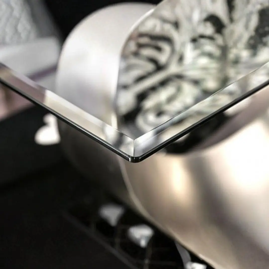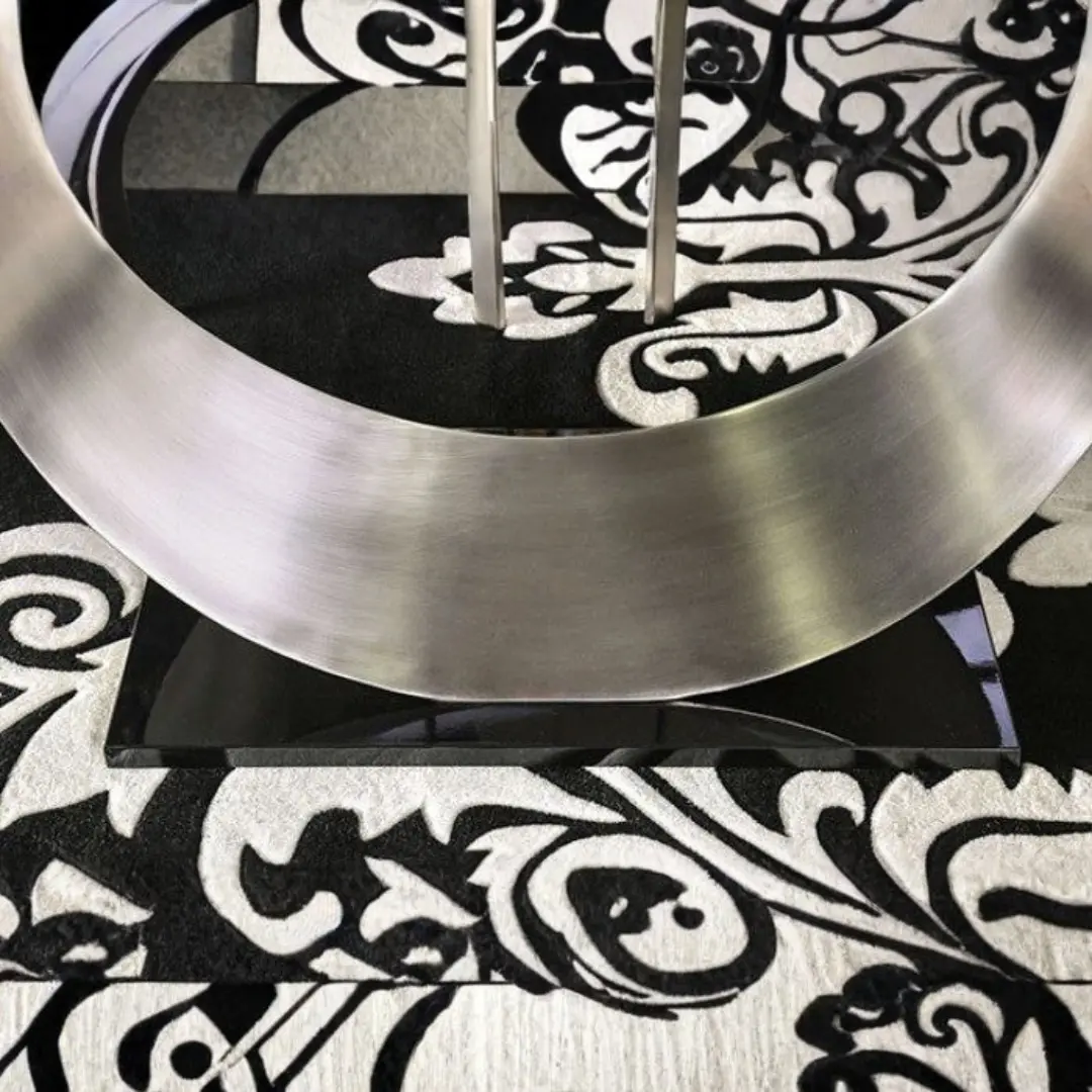At the heart of the Orla Dining Table is a 10mm beveled-edge tempered glass top, offering both purity of design and resilient everyday practicality. The glass allows light to flow easily throughout your space, keeping your dining area open and inviting. Anchoring the tabletop is a sculptural crescent chrome post in satin-plated silver—bold yet polished—and supported by a black flat base that adds grounding contrast and excellent balance.