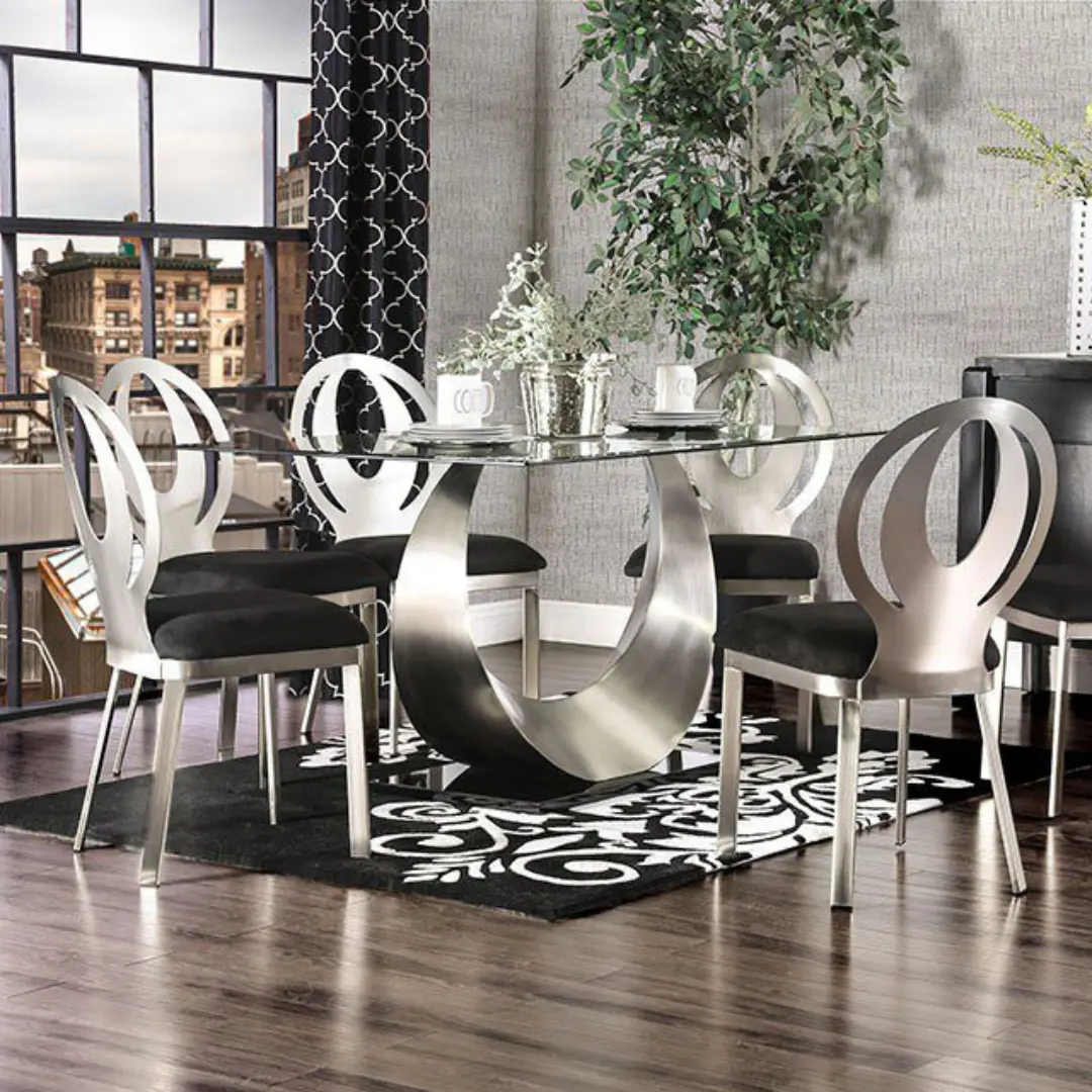 Orla Dining Table Contemporary Silver, Black by Furniture of America