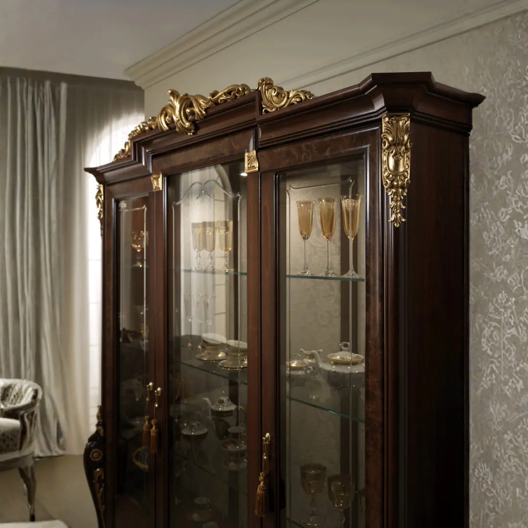 The Donatello 3 Door China stands out with its refined, high-gloss lacquer finish that enhances the rich walnut tones and adds depth to its artisanal styling. The classic European design blends seamlessly into modern interiors, while the three-door configuration provides ample enclosed and display storage for your finest china, crystal, and collectibles.