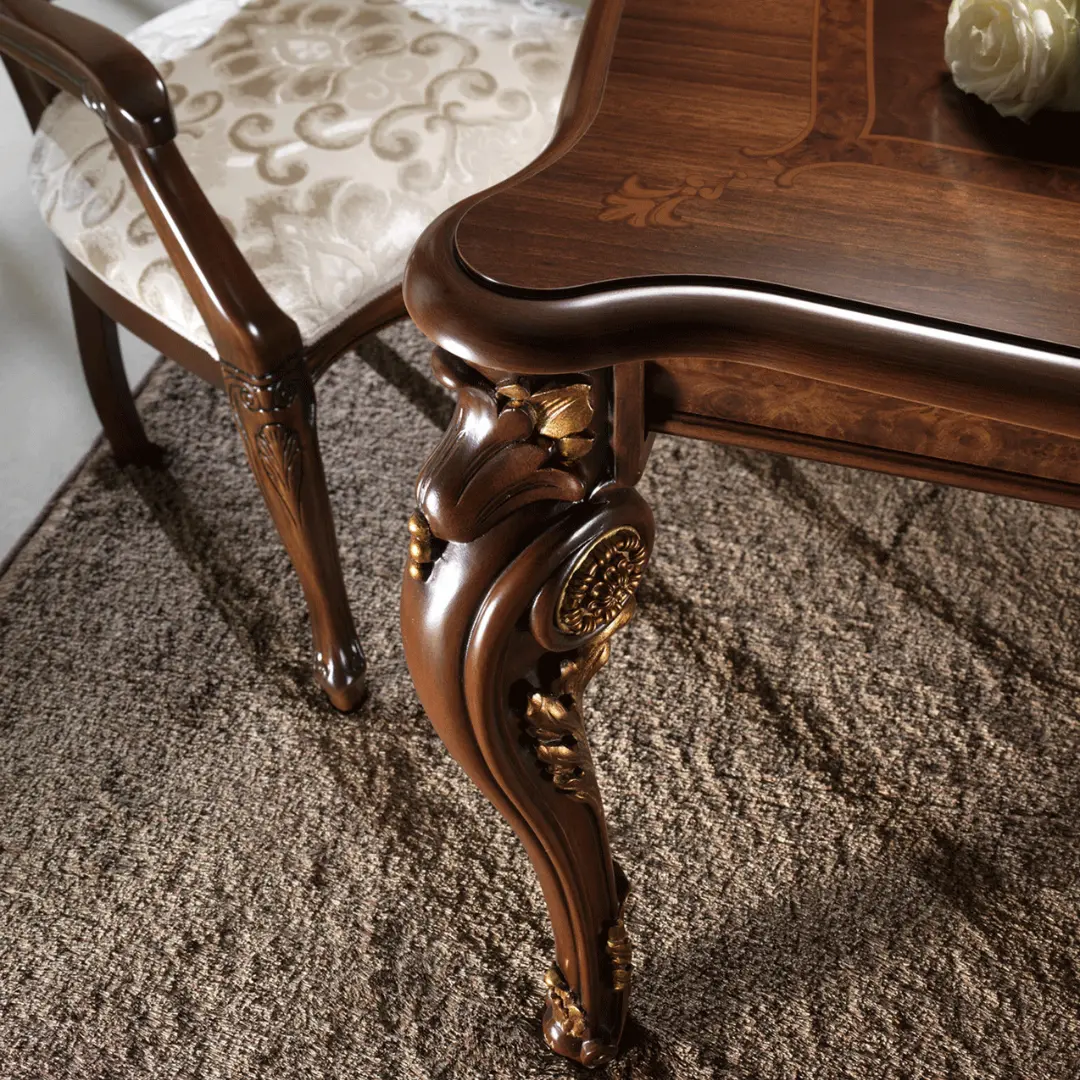 Crafted for professionals, collectors, and discerning homeowners, the Donatello Armchair features a robust wooden frame with intricate carvings that reflect classic European artistry. The high gloss lacquer not only enhances visual appeal but serves to protect and preserve the detailed woodwork beneath.