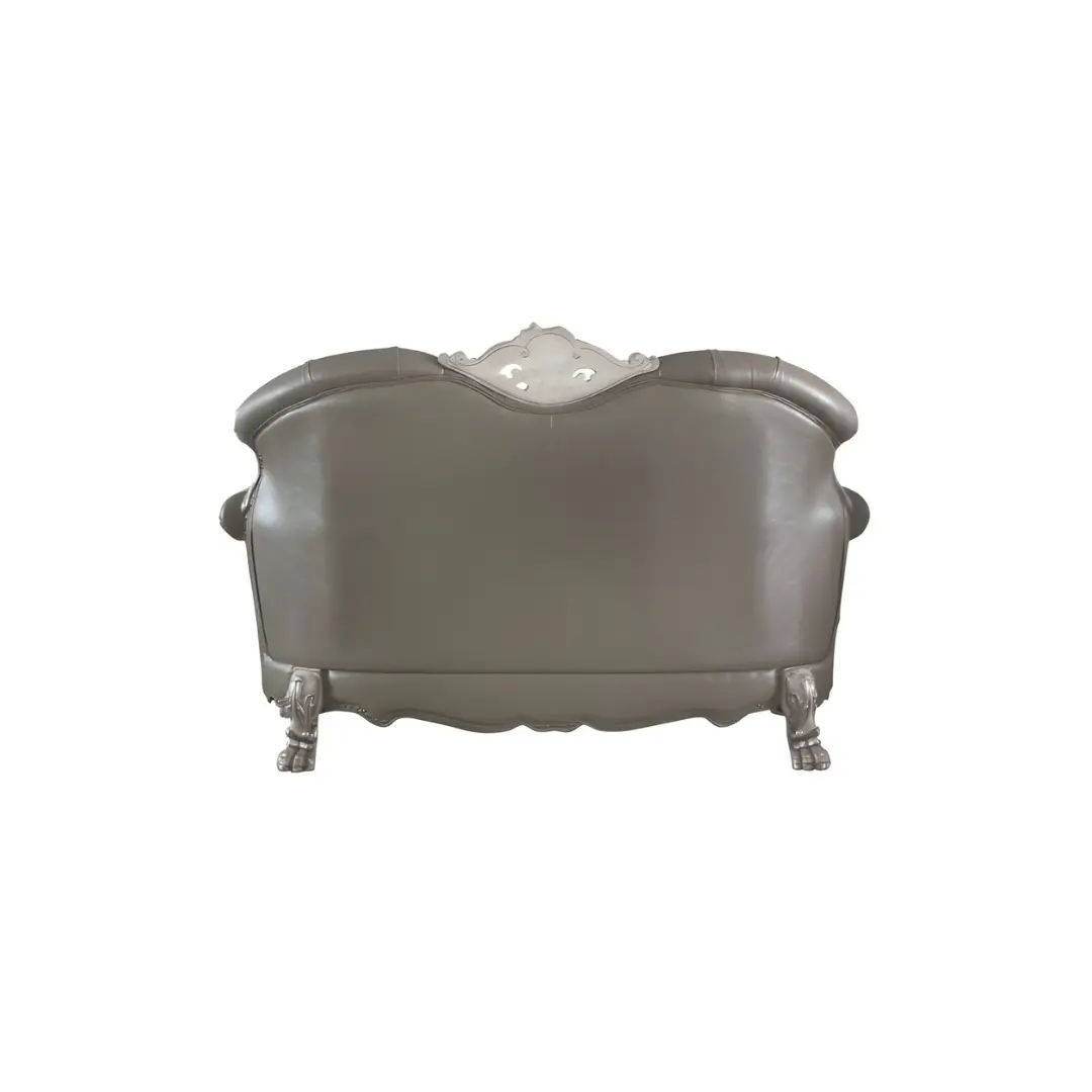Elevate your living space with the Synthetic Leather & Vintage Bone White Finish Dresden Loveseat W/3 Pillows 58176 by ACME — a refined interpretation of old-world charm fused with modern functionality. Crafted as part of the acclaimed Dresden Collection, this loveseat is the perfect choice for those seeking timeless elegance and flawless craftsmanship in their luxury furniture.