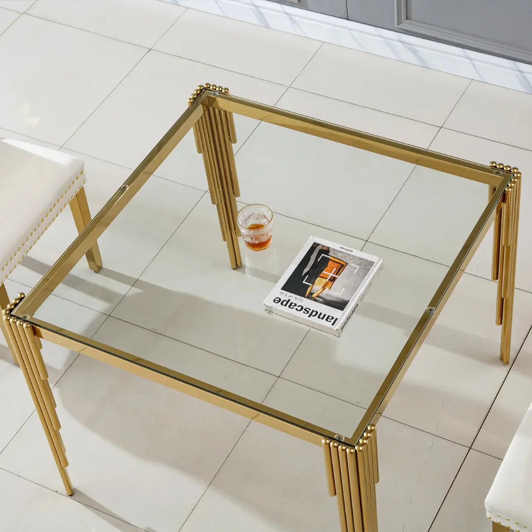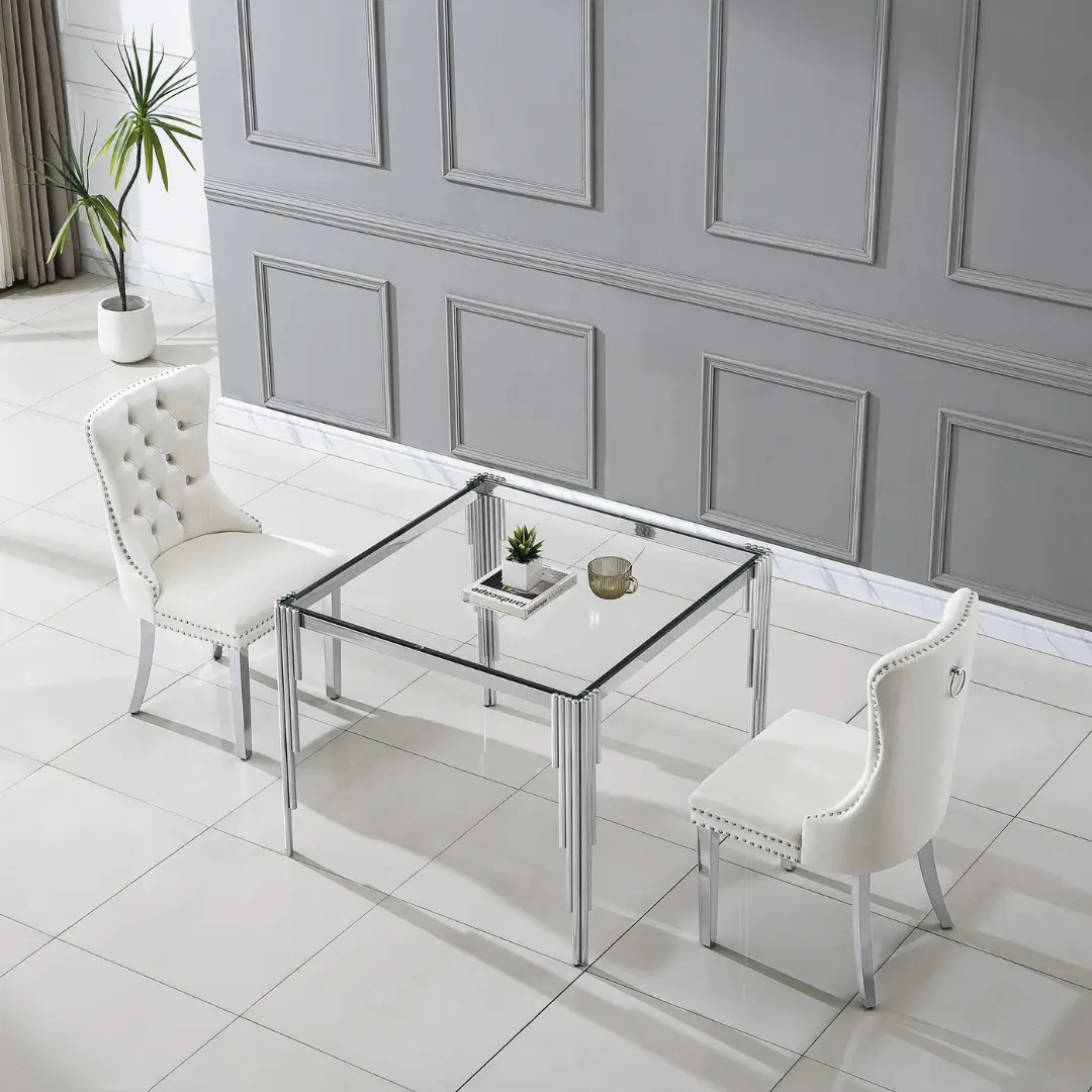 Crafted with an unwavering attention to detail, the DT0312 table is built around a 10mm clear tempered glass top. This premium-grade surface is not only heat-resistant and easy to maintain but also adds depth and clarity to the table’s minimalist aesthetic. The square structure provides generous space for up to four guests, making it ideal for intimate gatherings and everyday dining alike.